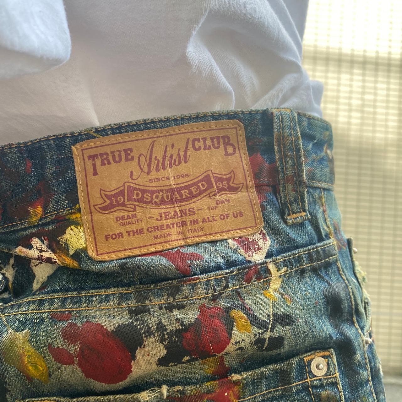 ダメージとペイント、レザーの大きさ完璧なコーデです!