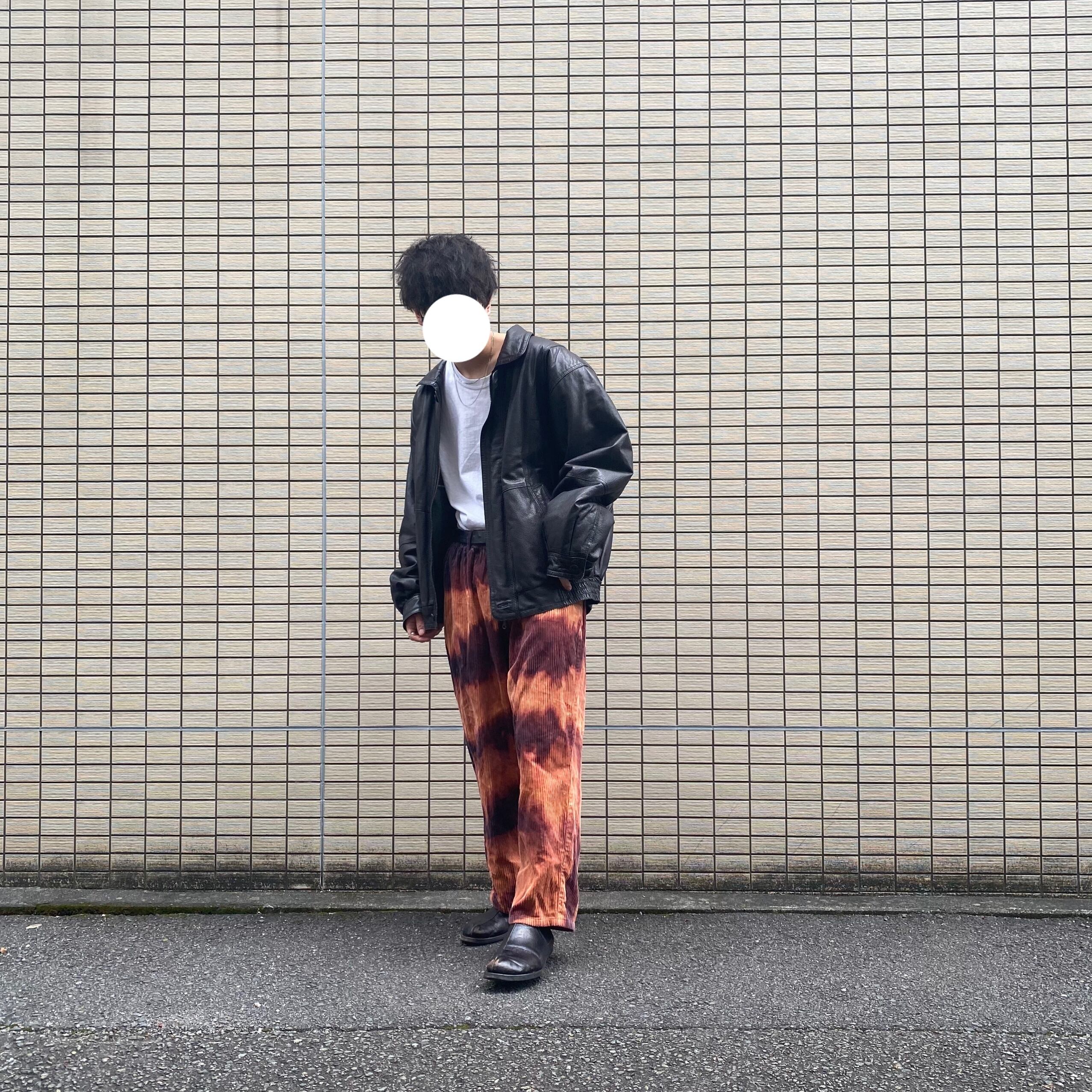 ダボッとしたレザージャケットがカッコイイです!リメイクのタイダイパンツも渋い色に仕上がりました。
