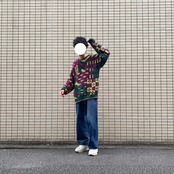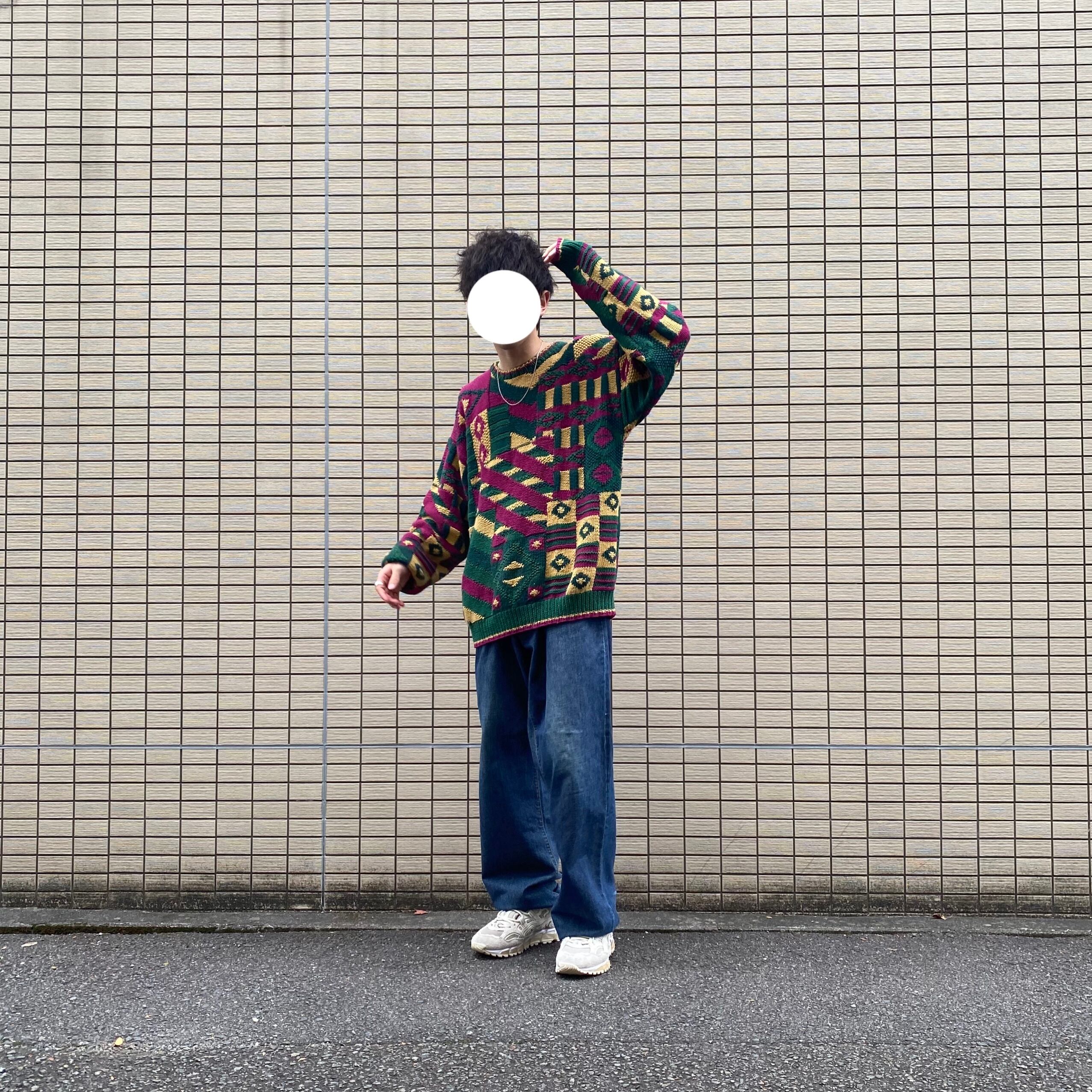 珍しい柄のニットが入荷しました!人と被らないデザインで個性的なファッションが好きな人にオススメです。ボトムはシンプルなデニムを合わせて見ました。こちらは色も形も良いため1つ持っておくと着回し抜群です!