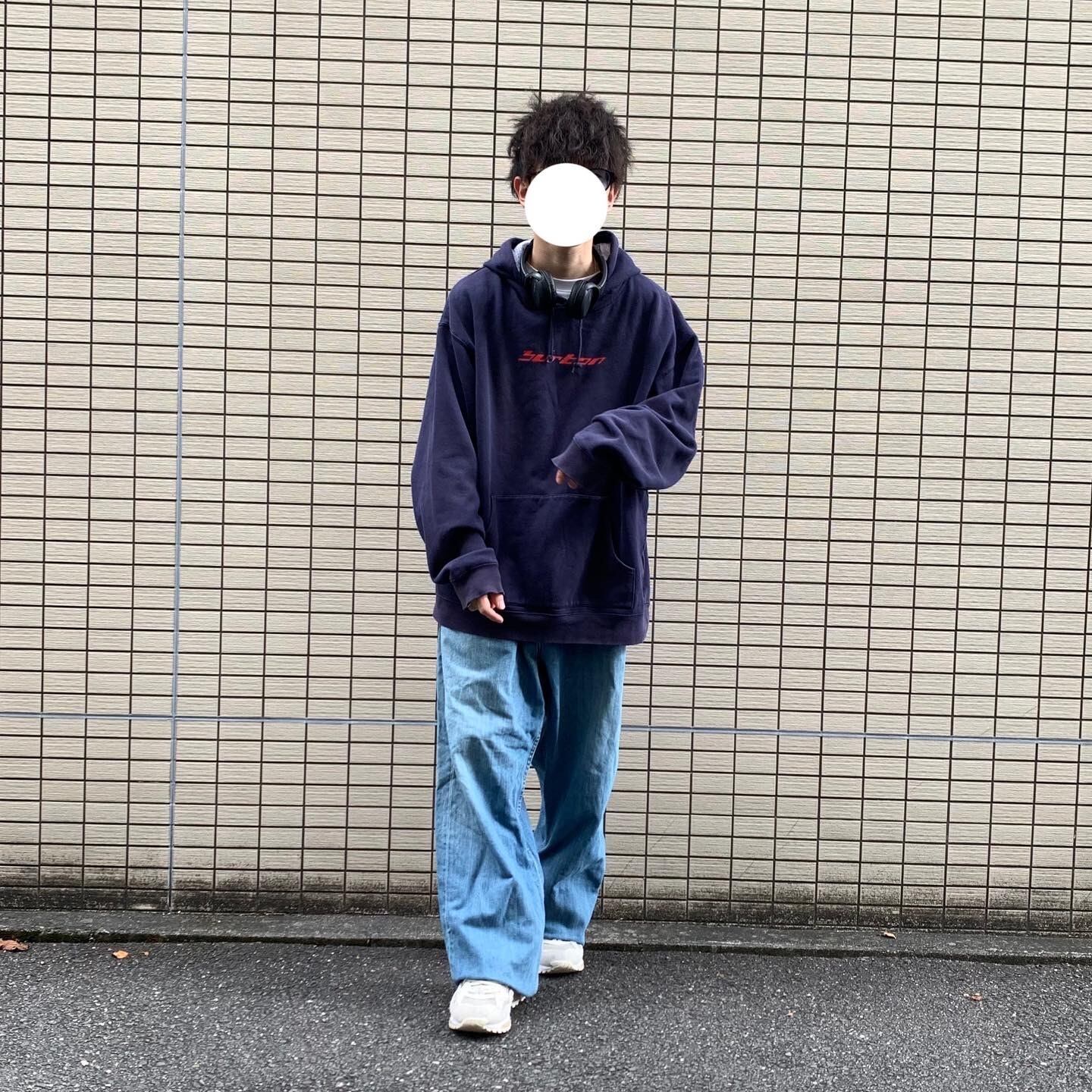 人2人分ぐらいのワイドなリーバイス にオーバーなバートンのスウェット合わせてます!