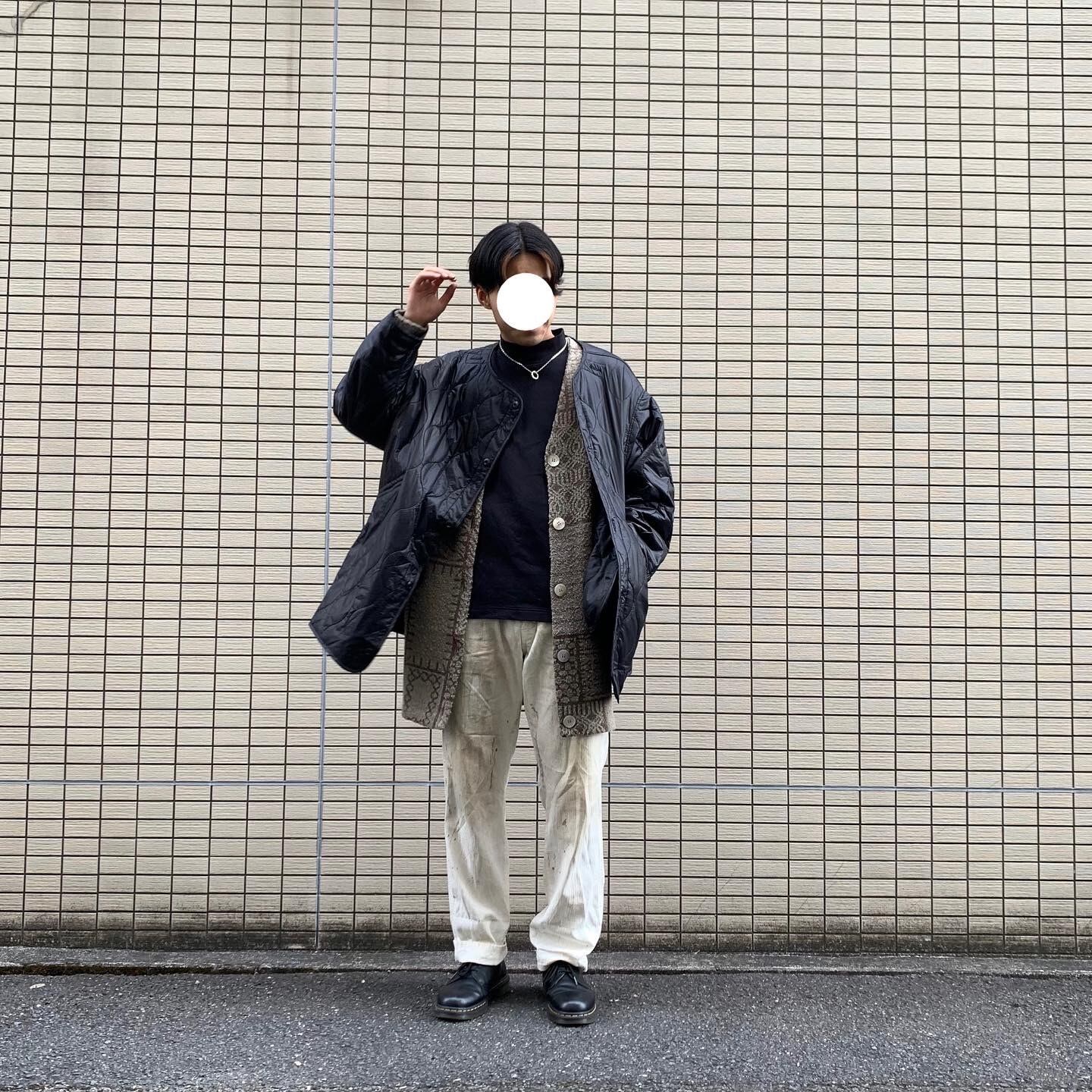 カーディガンプラスキルティングライナーのコーデです!