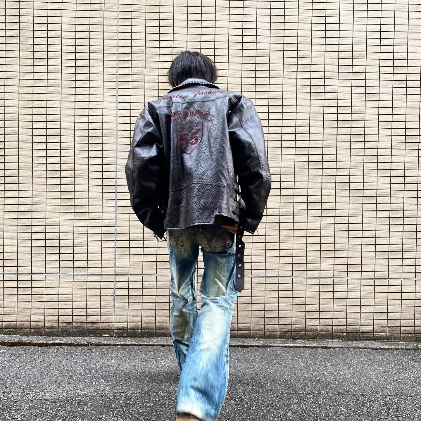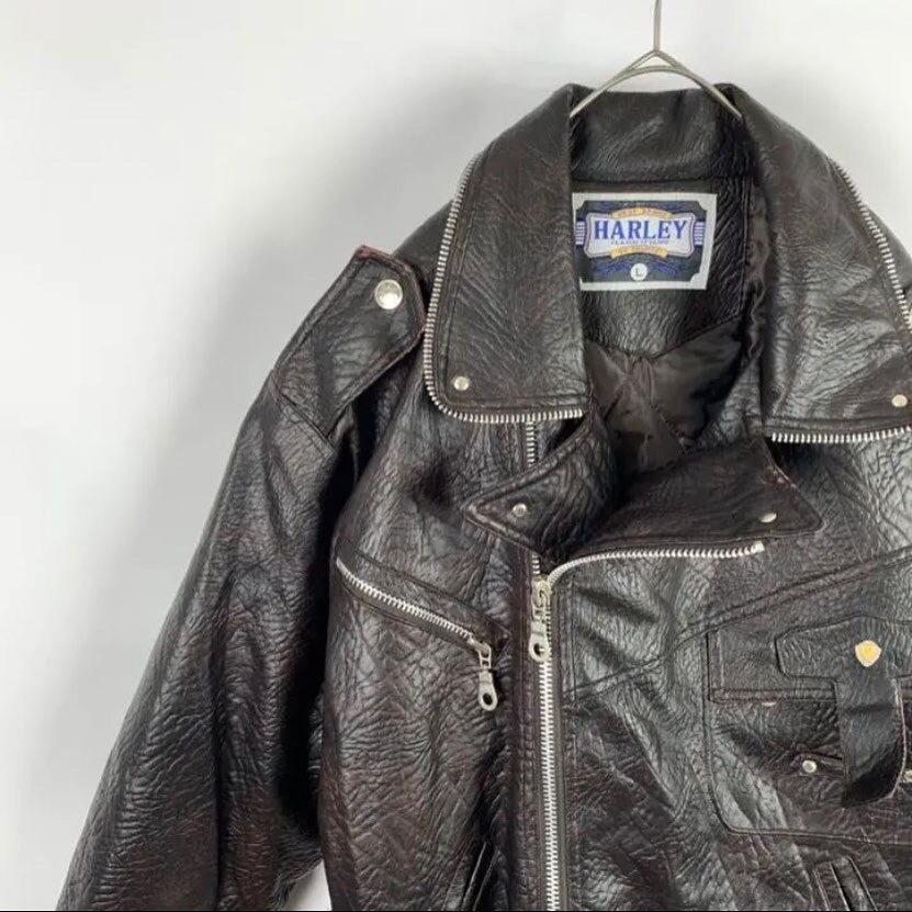 Top used ハーレー フェイクレザー 鬼渋 ダブルライダースジャケット
