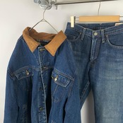 ブランドは違いますが、ほぼ同じ色味のデニム生地を使ってセットアップにしています!
