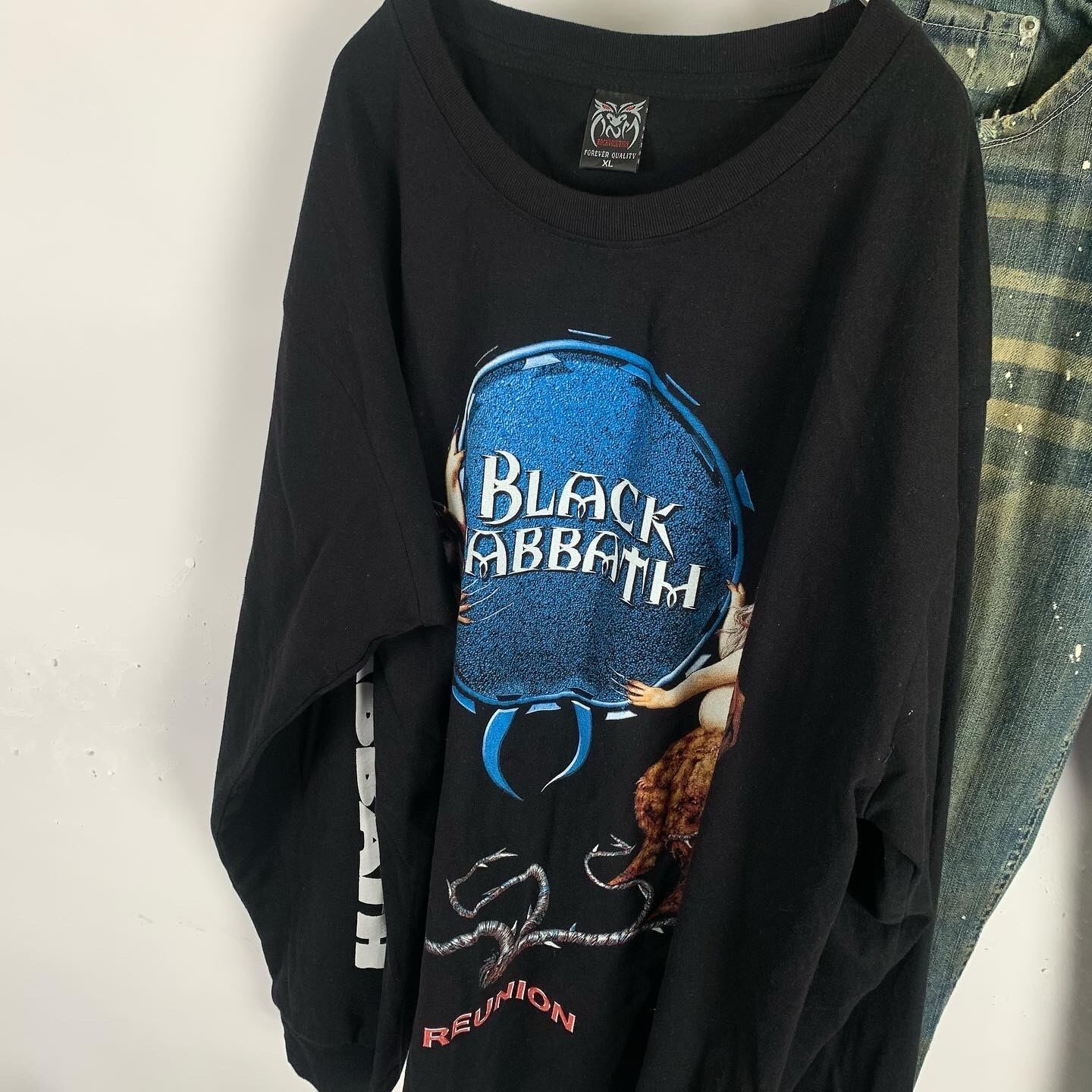 Top BLACK SABBATH ロングシャツ DELTA バンドT ブラック アームロゴ