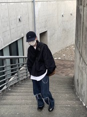 紐のアレンジだけでなく、裾を折っても表情が変わりますので、多様なスタイリングが演出出来るパンツです。