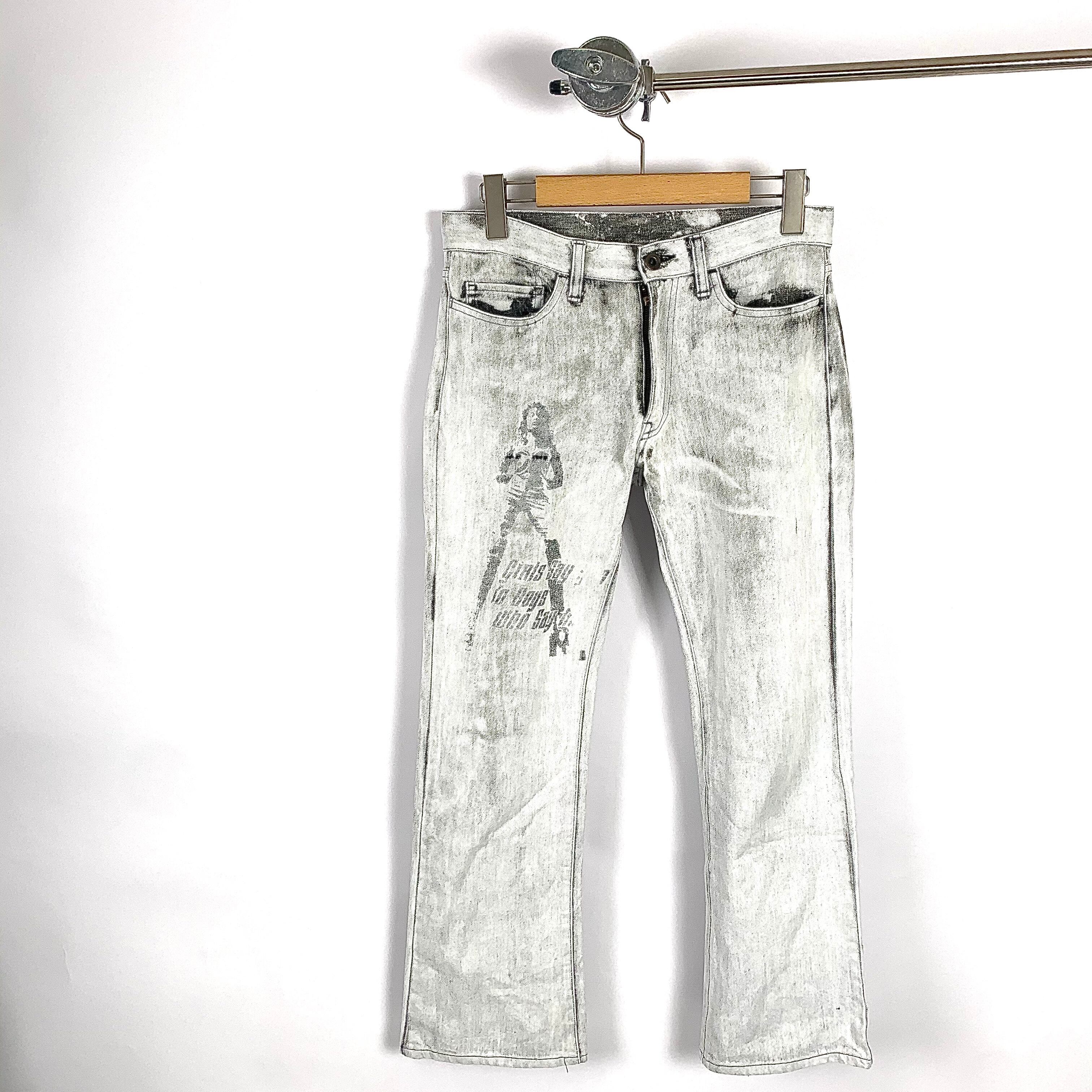 Used ストレート グレーデニム デザインプリント y2k ブリーチ加工