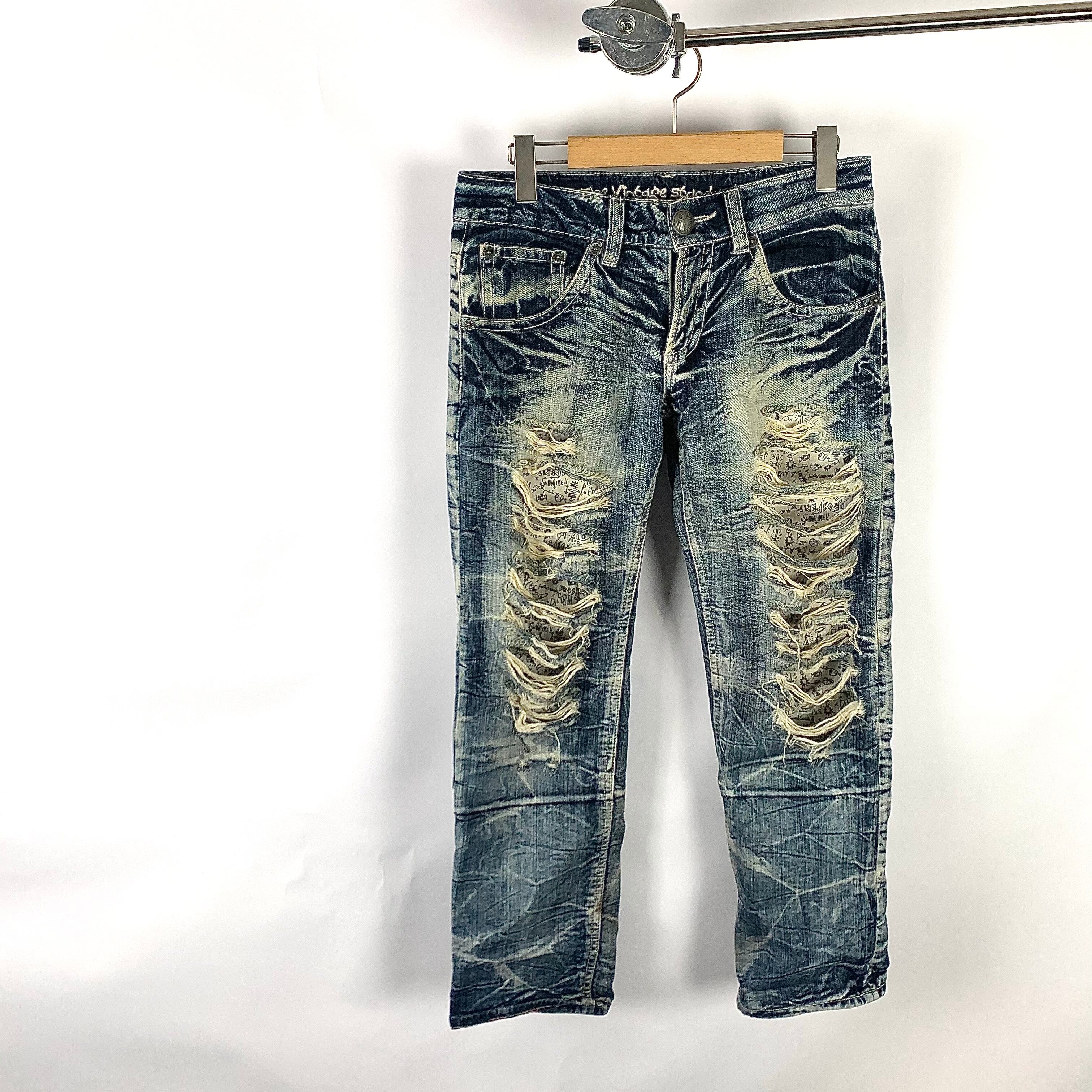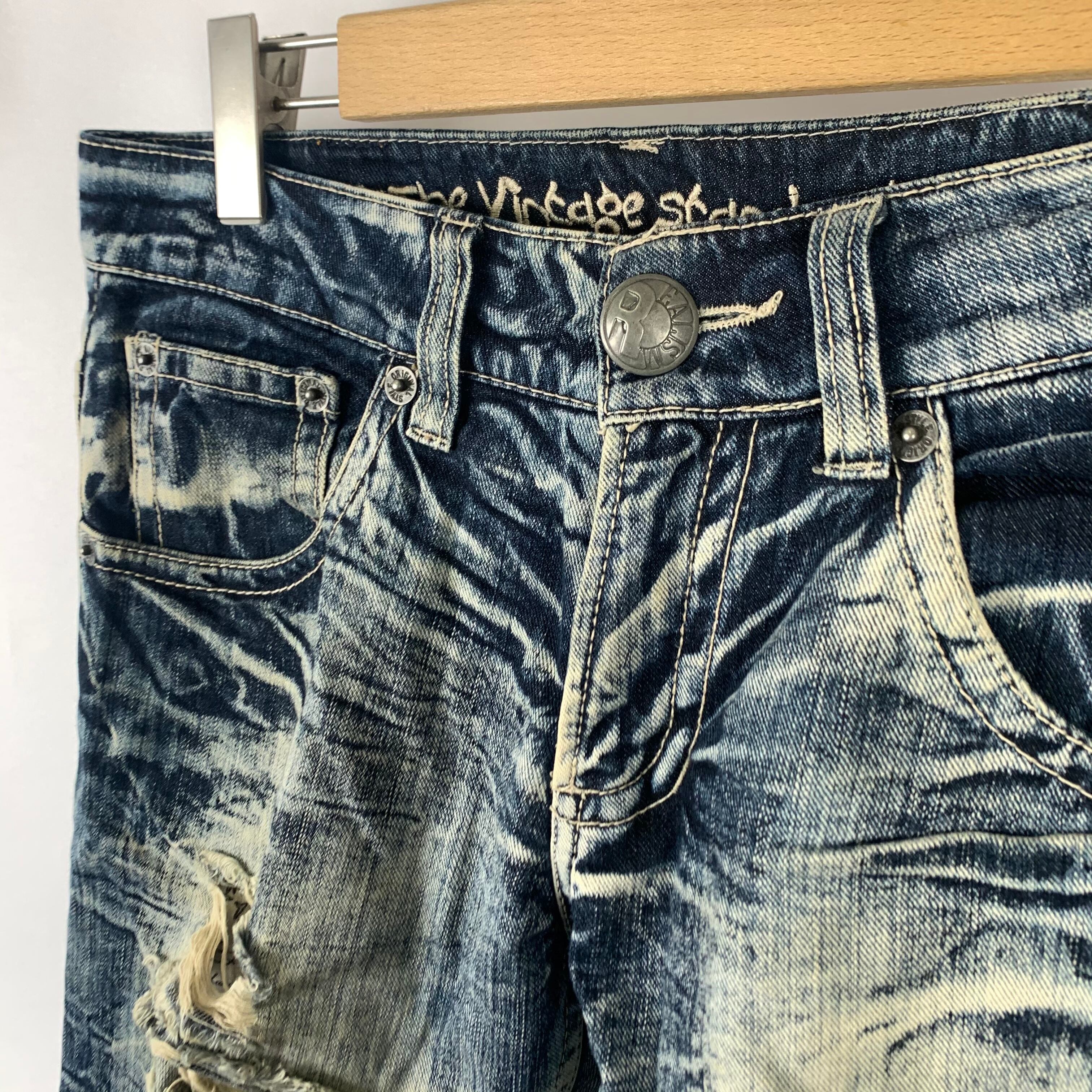 グランジデニムパンツ ダメージ加工 クラッシュ加工 Y2K ストレートデニム