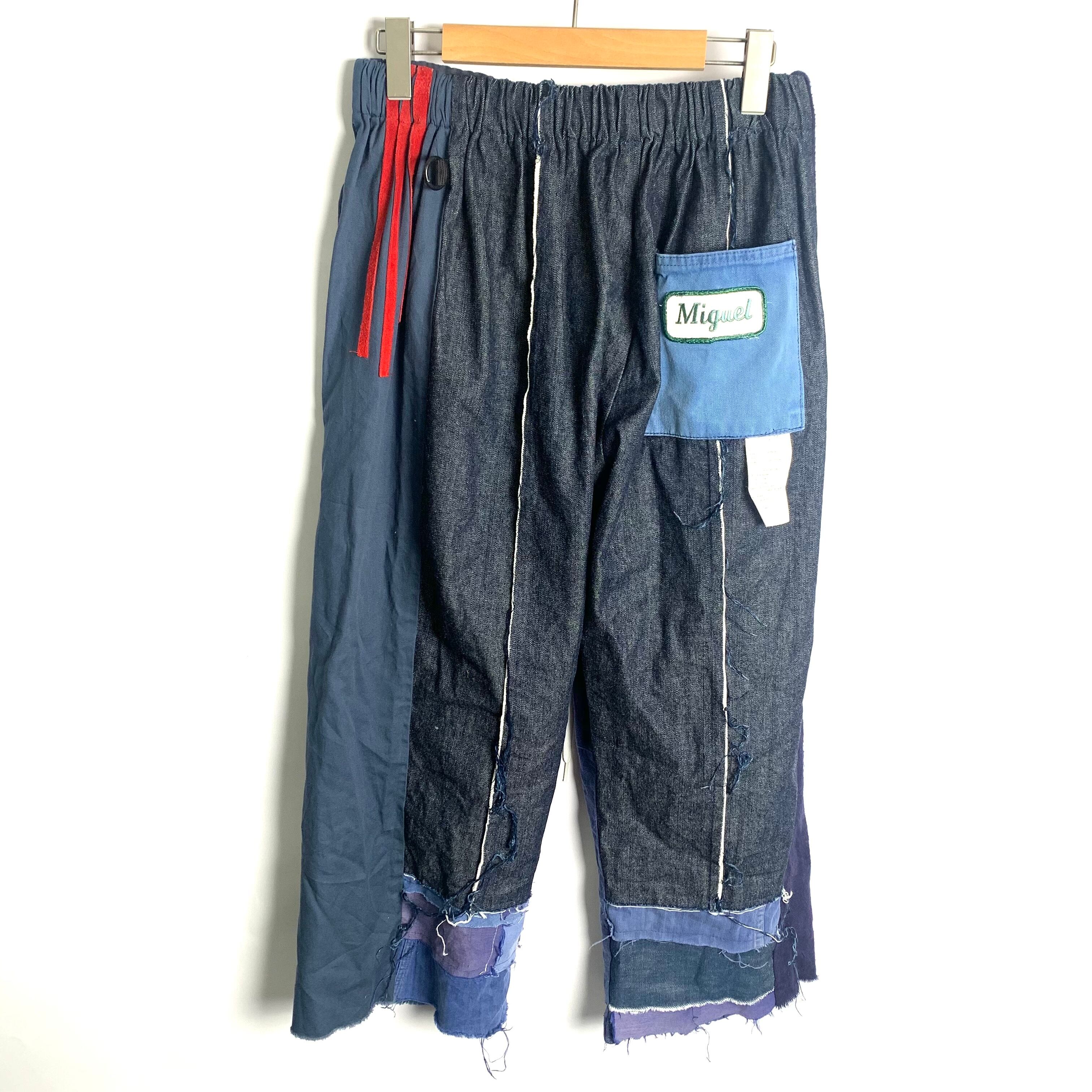 鬼渋 ワークシャツリメイク wide slacks pants パッチワーク