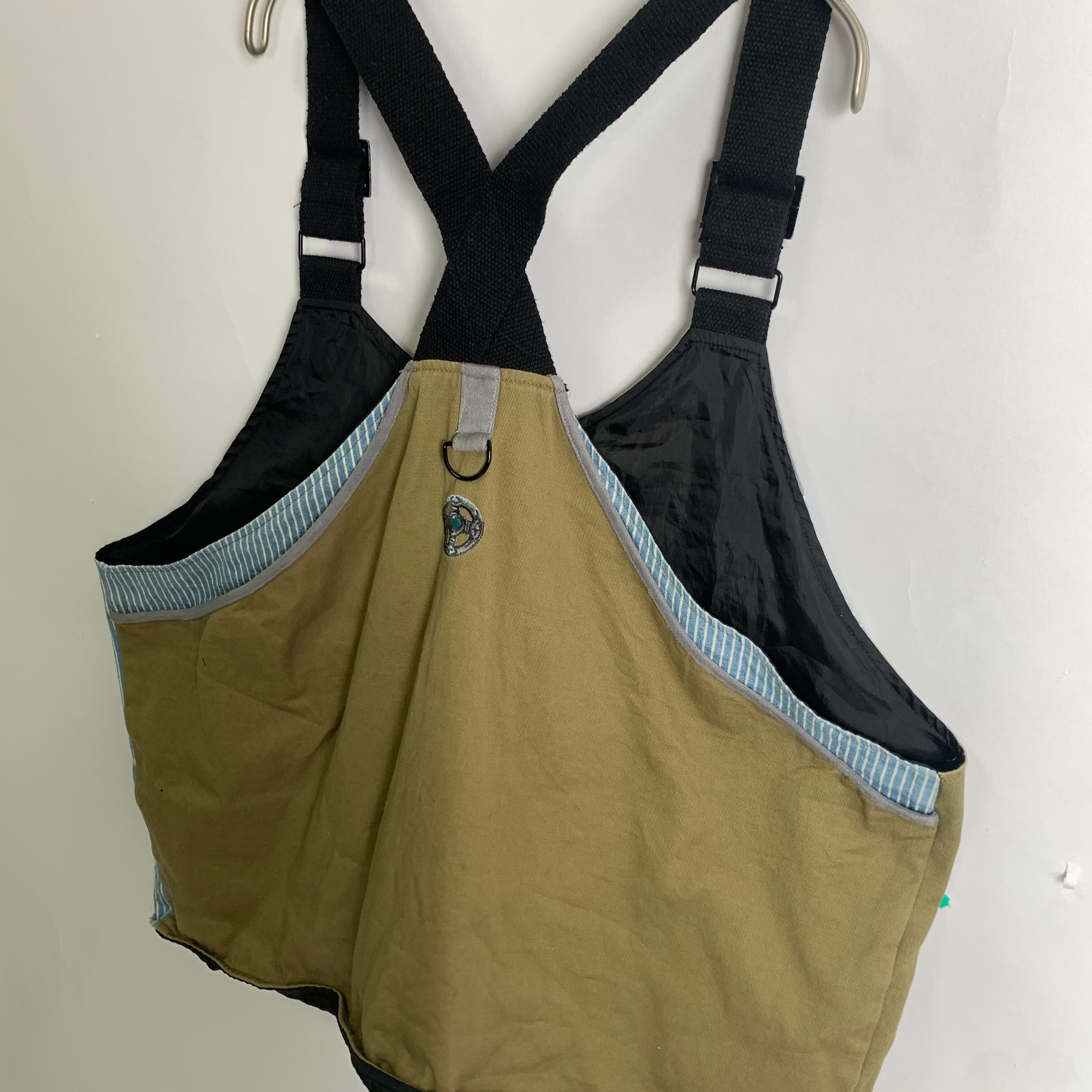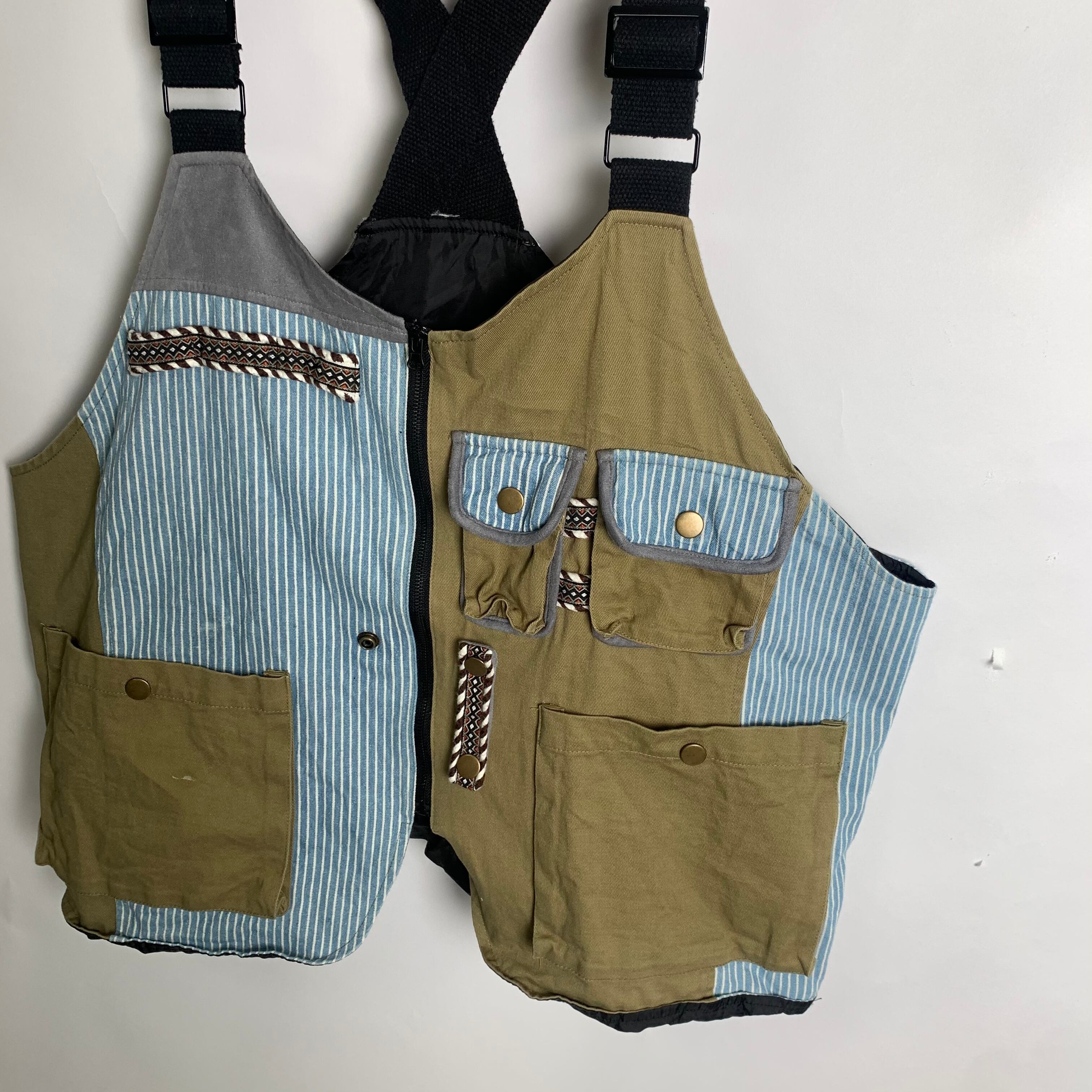 Used 古着 デザインベスト ヒッコリー ストライプ パッチワーク zip