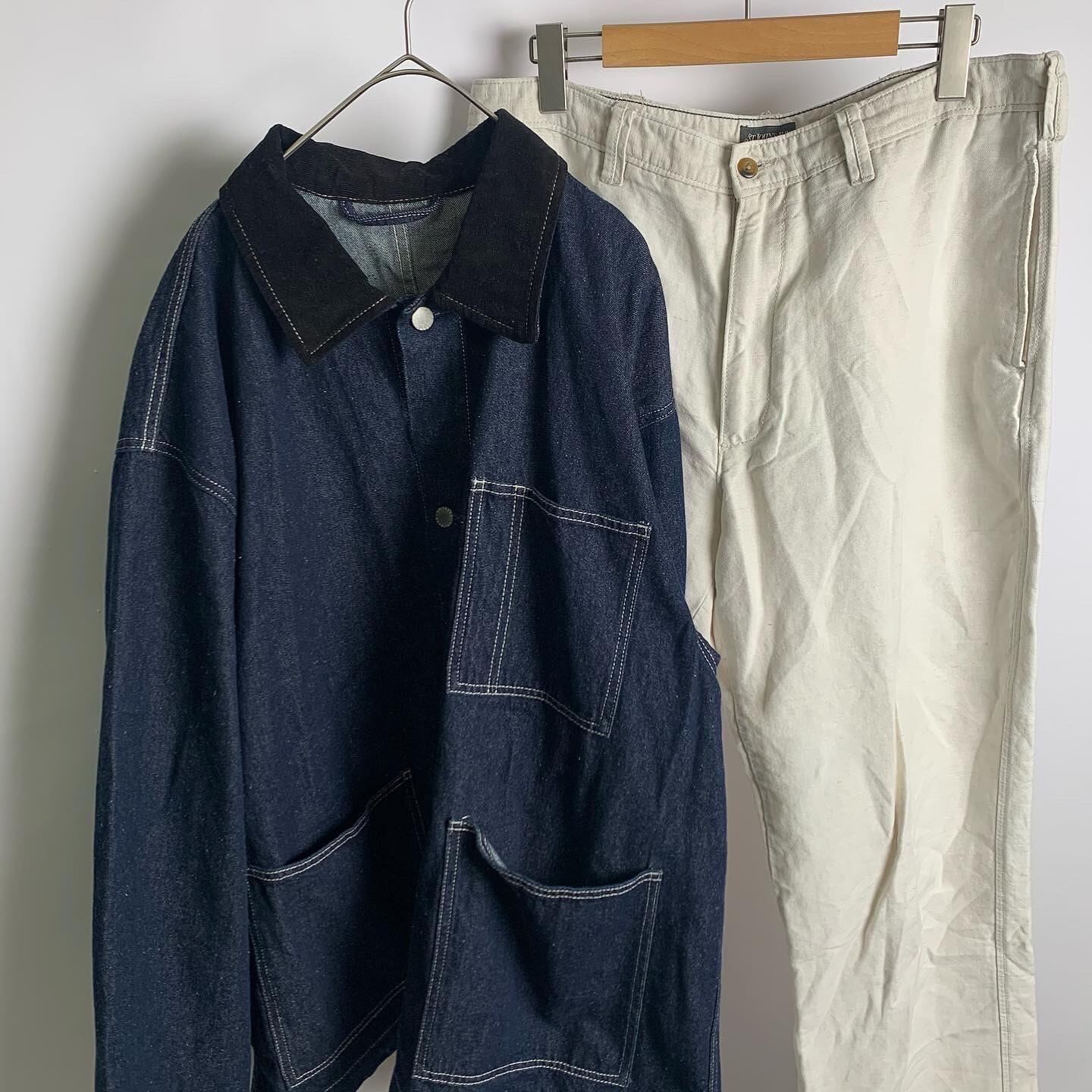 TopsGU 襟切替 カバーオール デニムジャケット ワイド