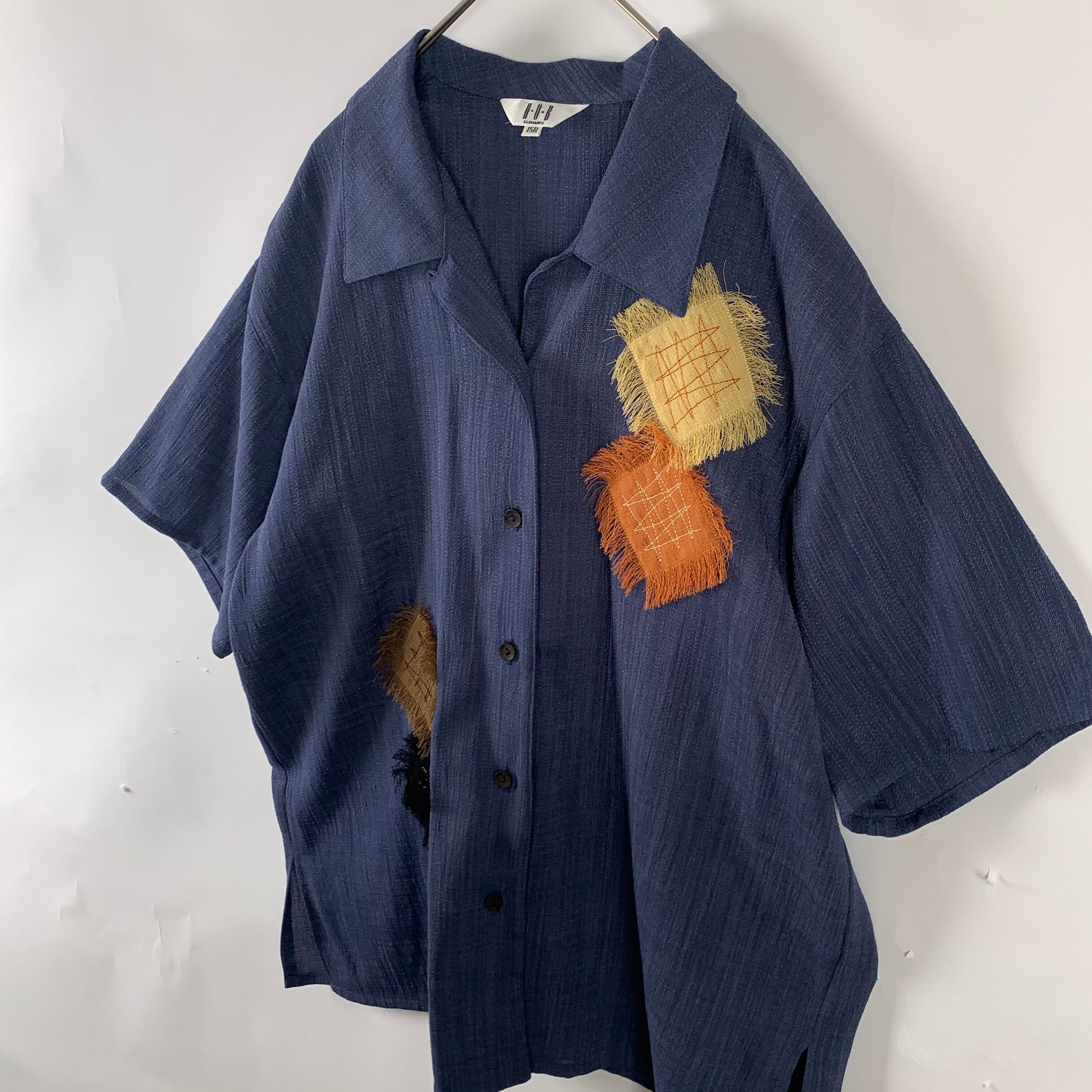 パッチワーク のデザインの効いたオープンカラーシャツ