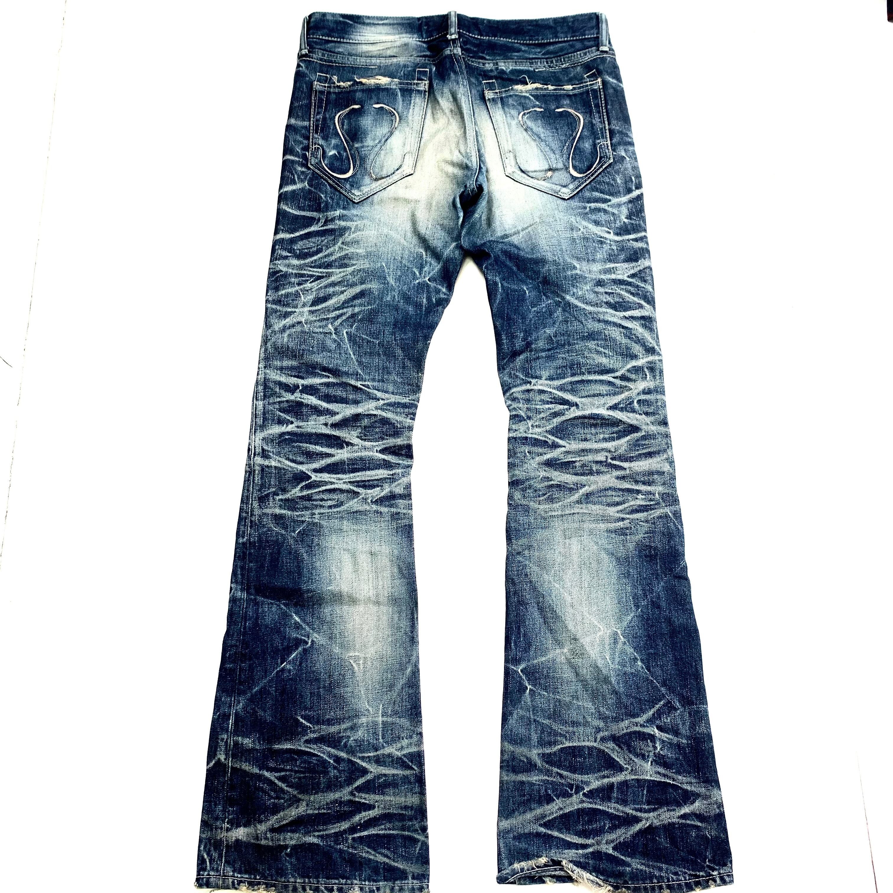 鬼渋 Y2K ファッション グランジ クミカルウォッシュ フレアデニム 加工