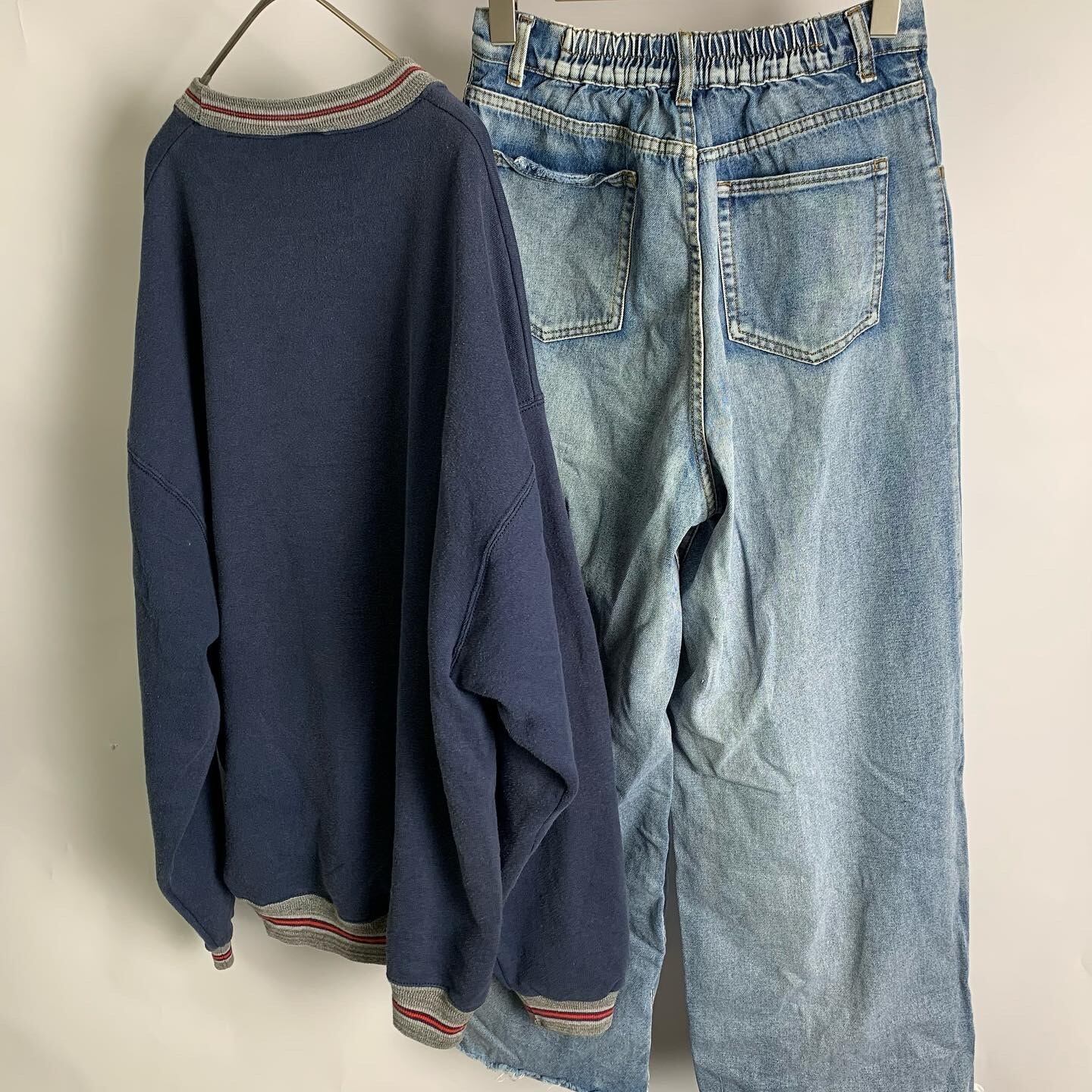 かなりオーバーサイズのスウェットにレディースデニムをカットオフしたワイドなデニムを合わせました!