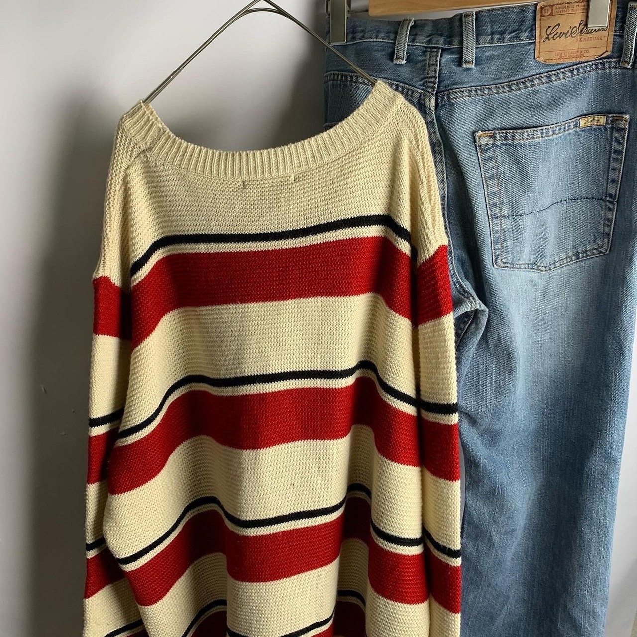 Top shein 韓国 ボーダー オーバーニット