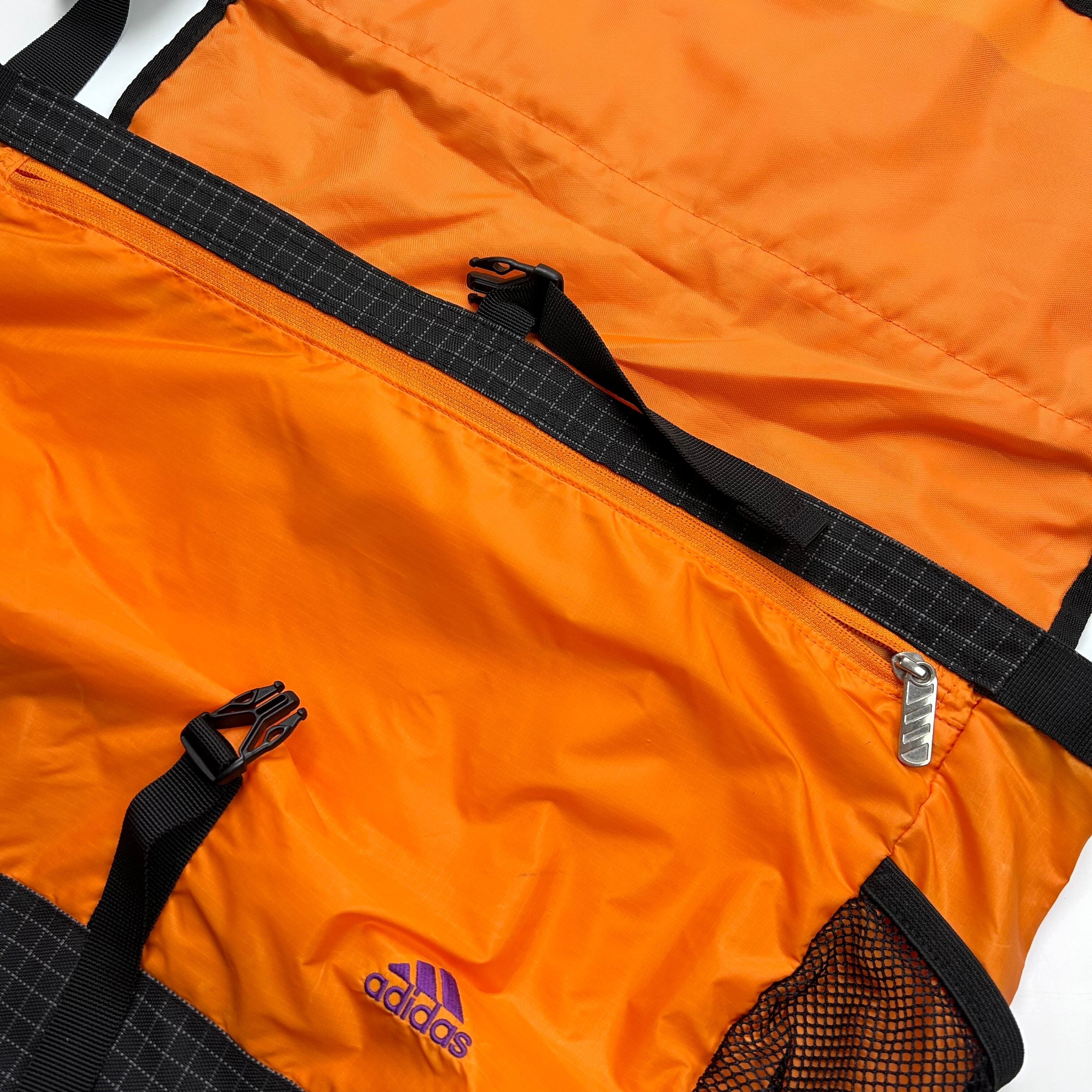 adidas チェックデザイン ナイロンショルダーバッグ オレンジ