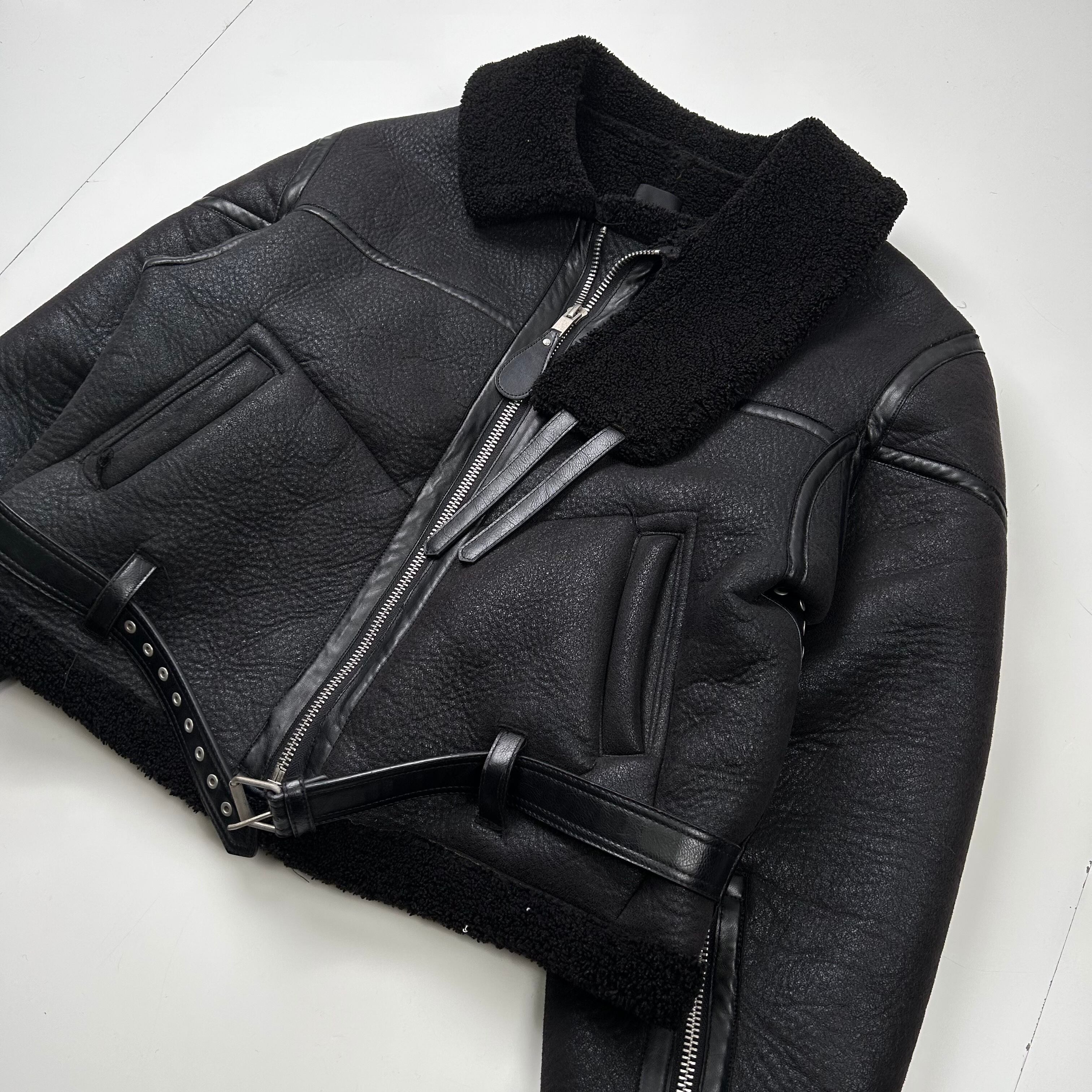 鬼渋 ムートンライダースジャケット 極暖 パンチングデザイン Y2K ショート丈