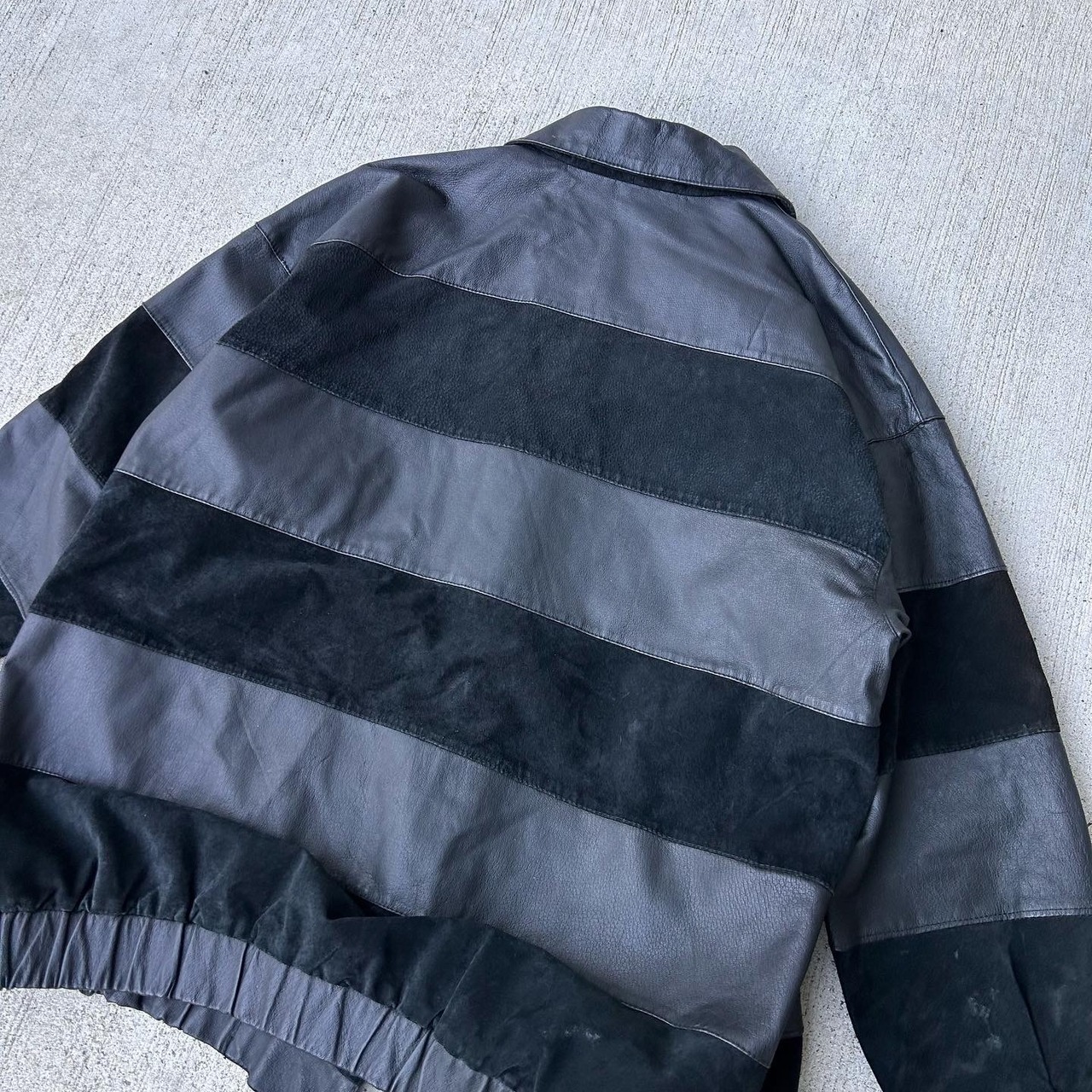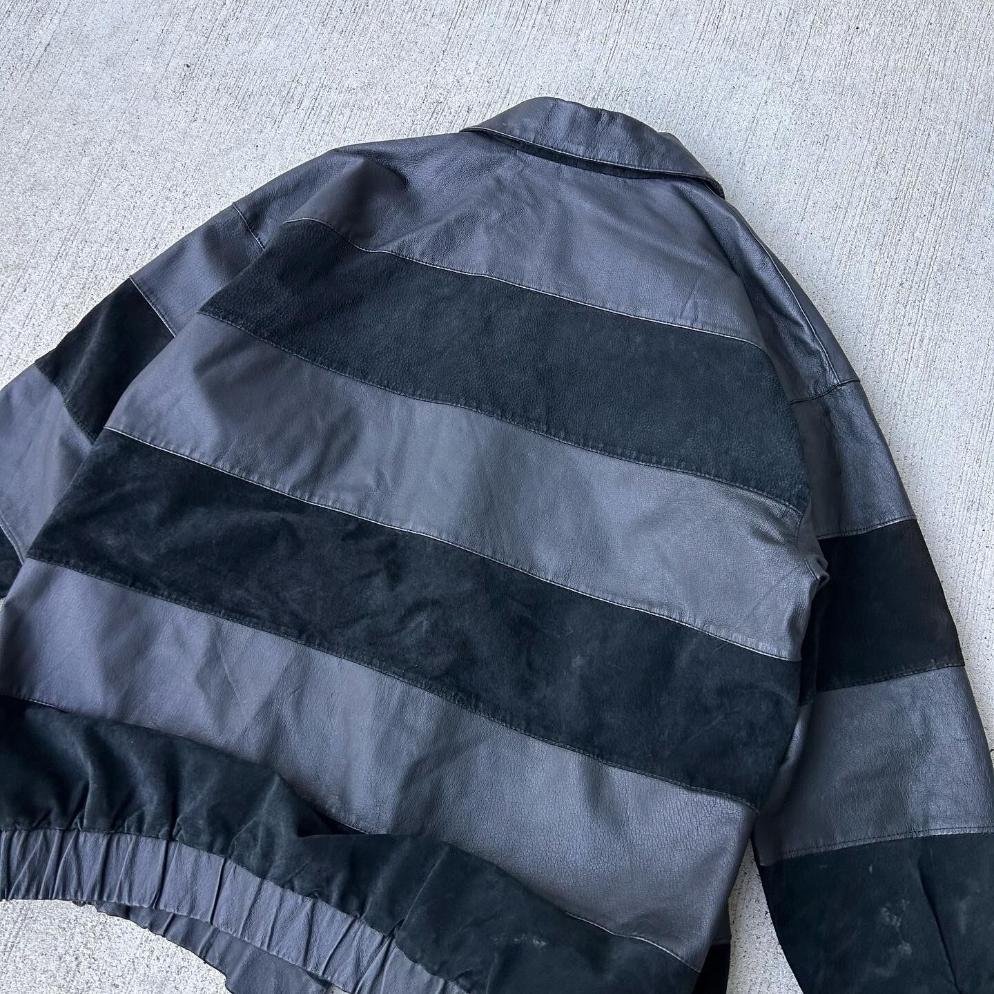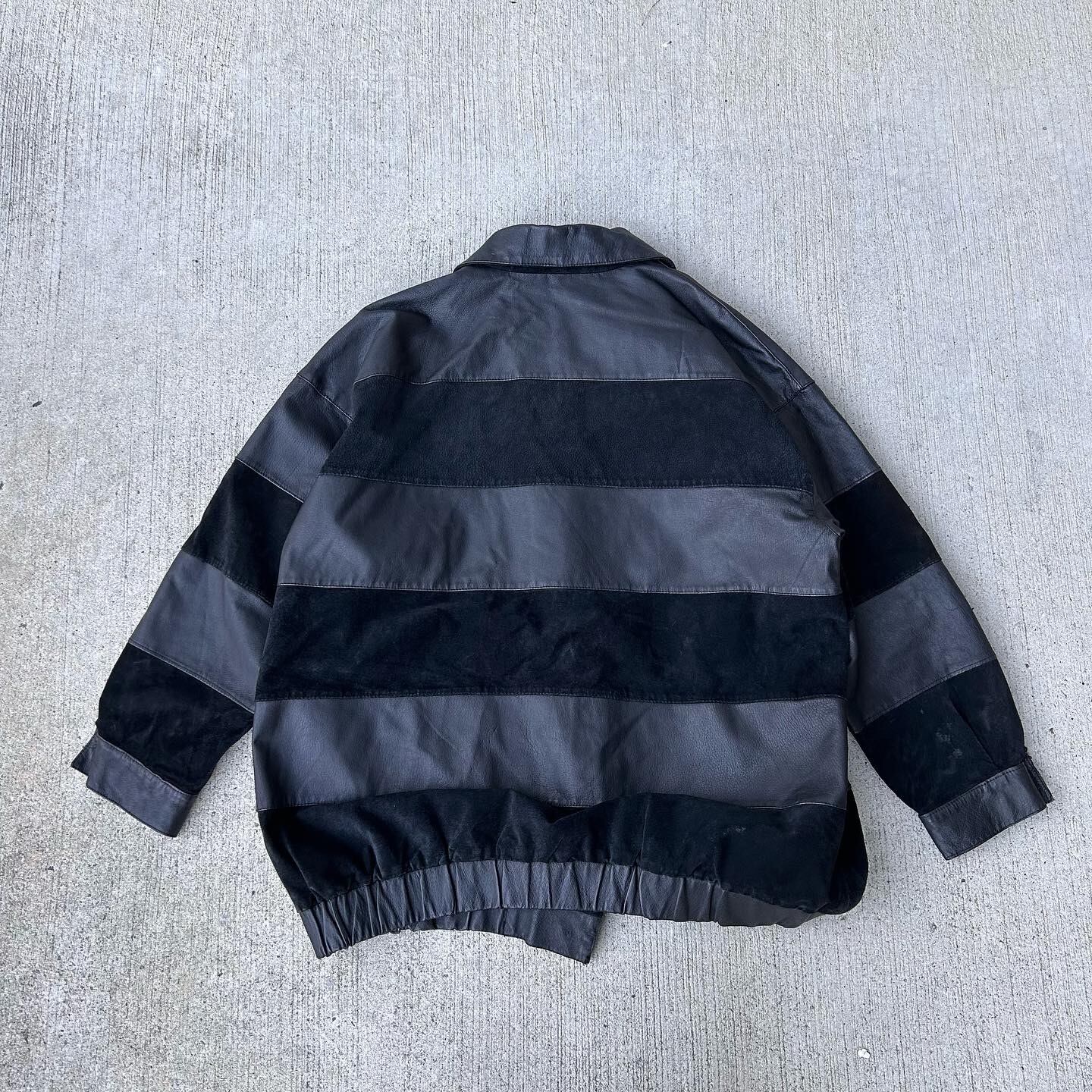 Used old リメイク スウェード切り替え オーバーレザージャケット ボーダーデザイン