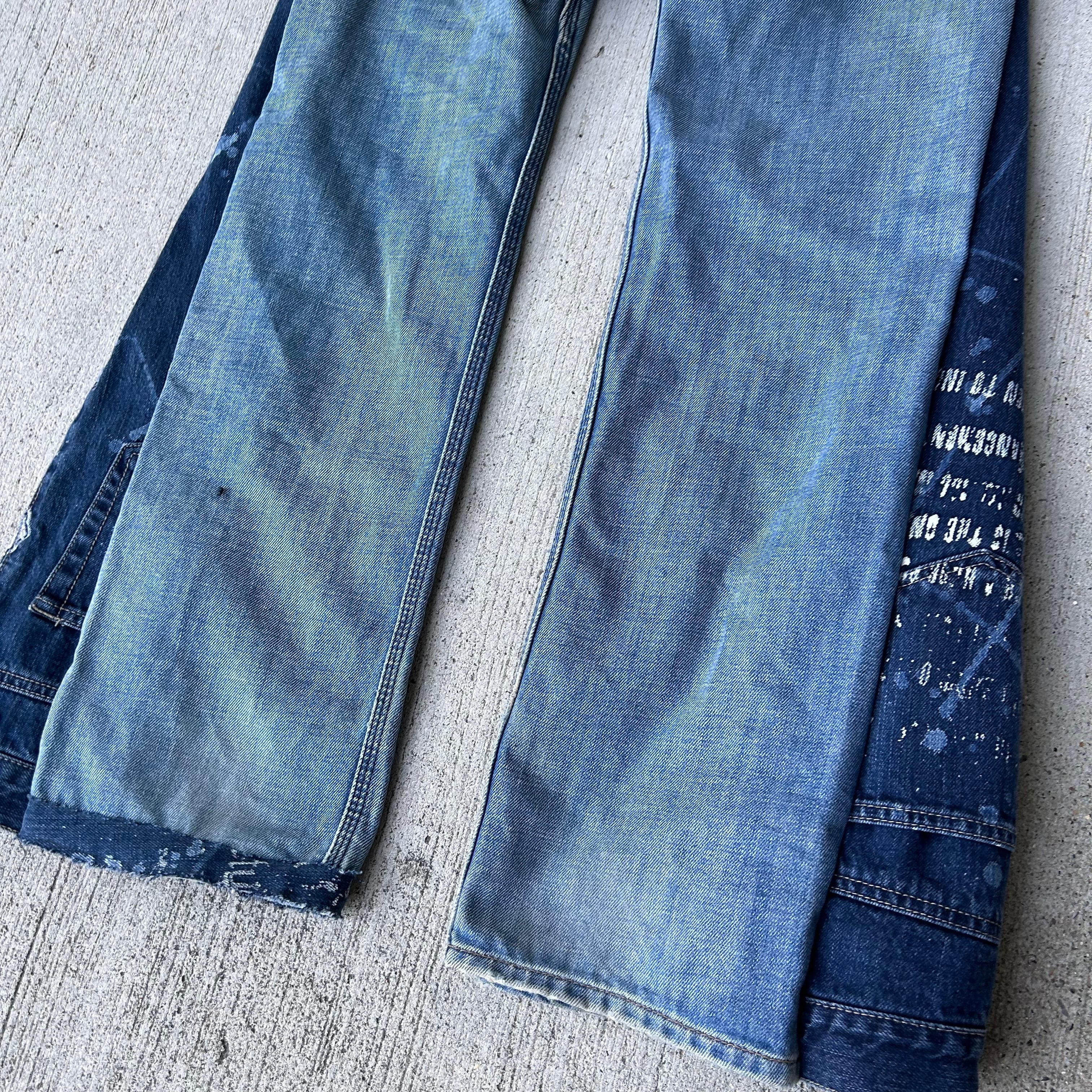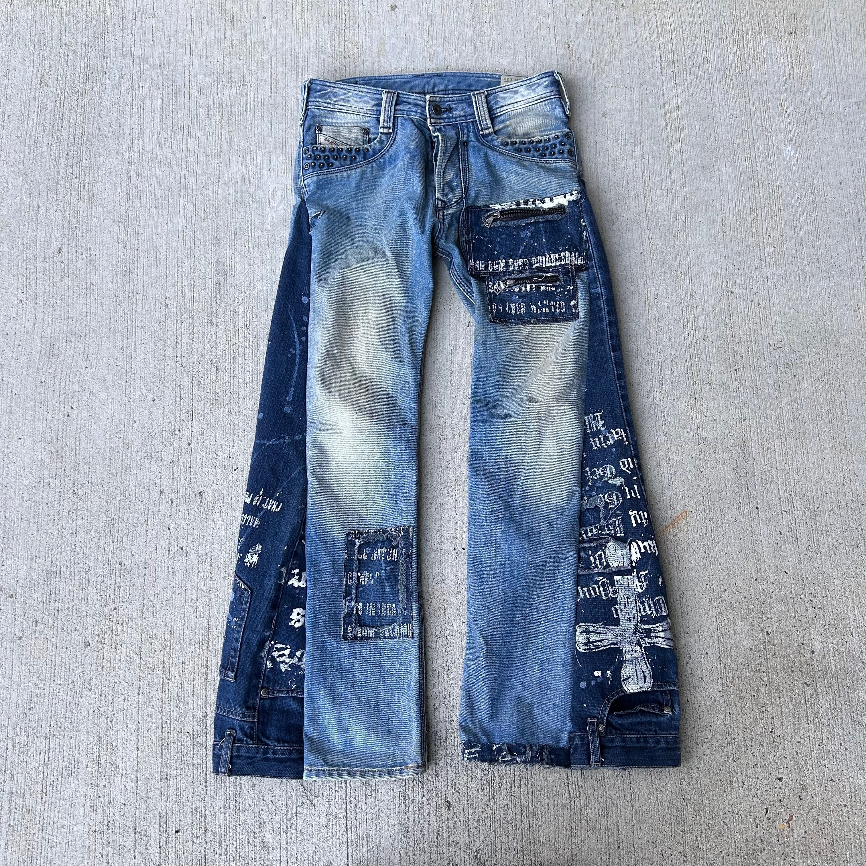 グランジリメイクスタッズ フレアデニム カートコバン インク Y2K ドッキング