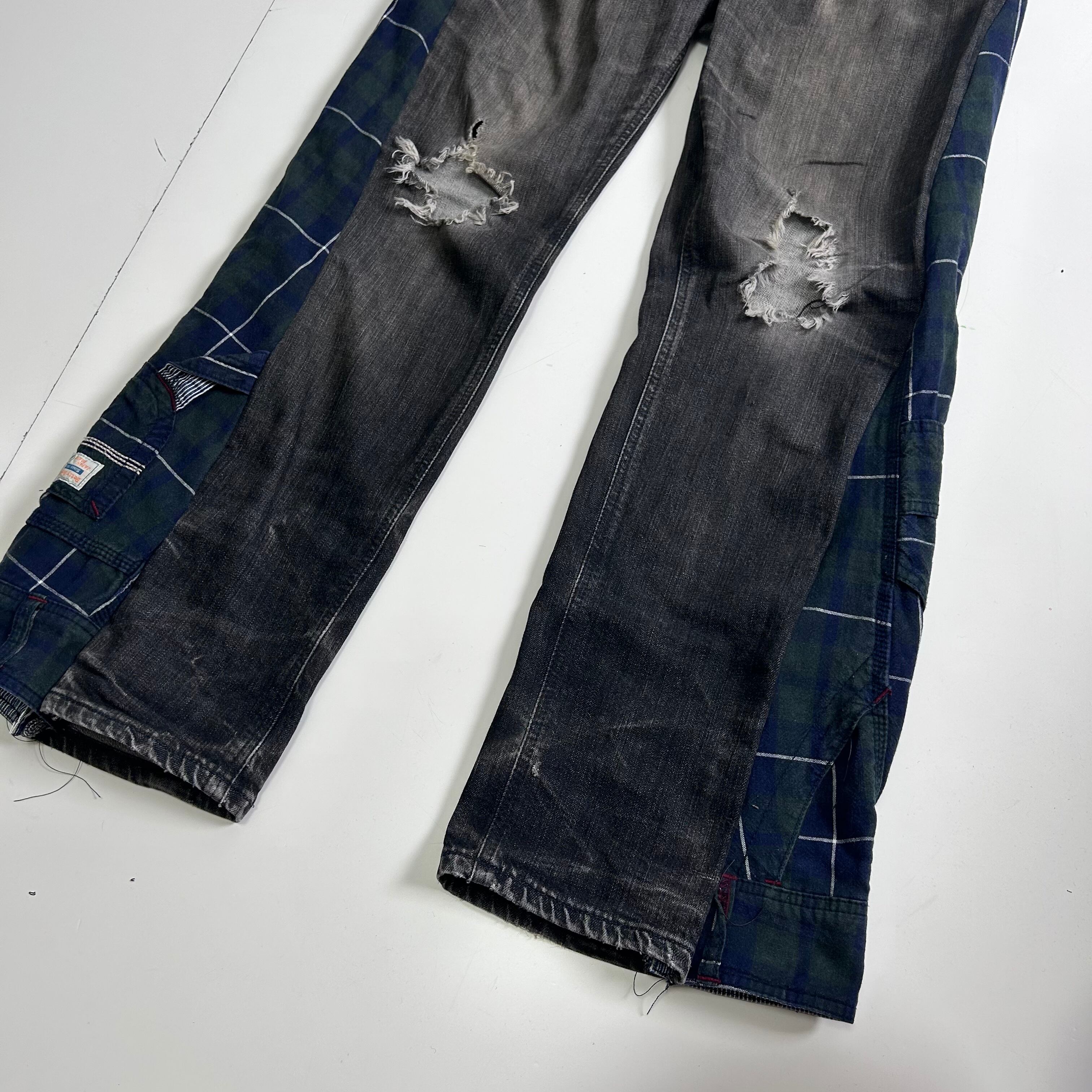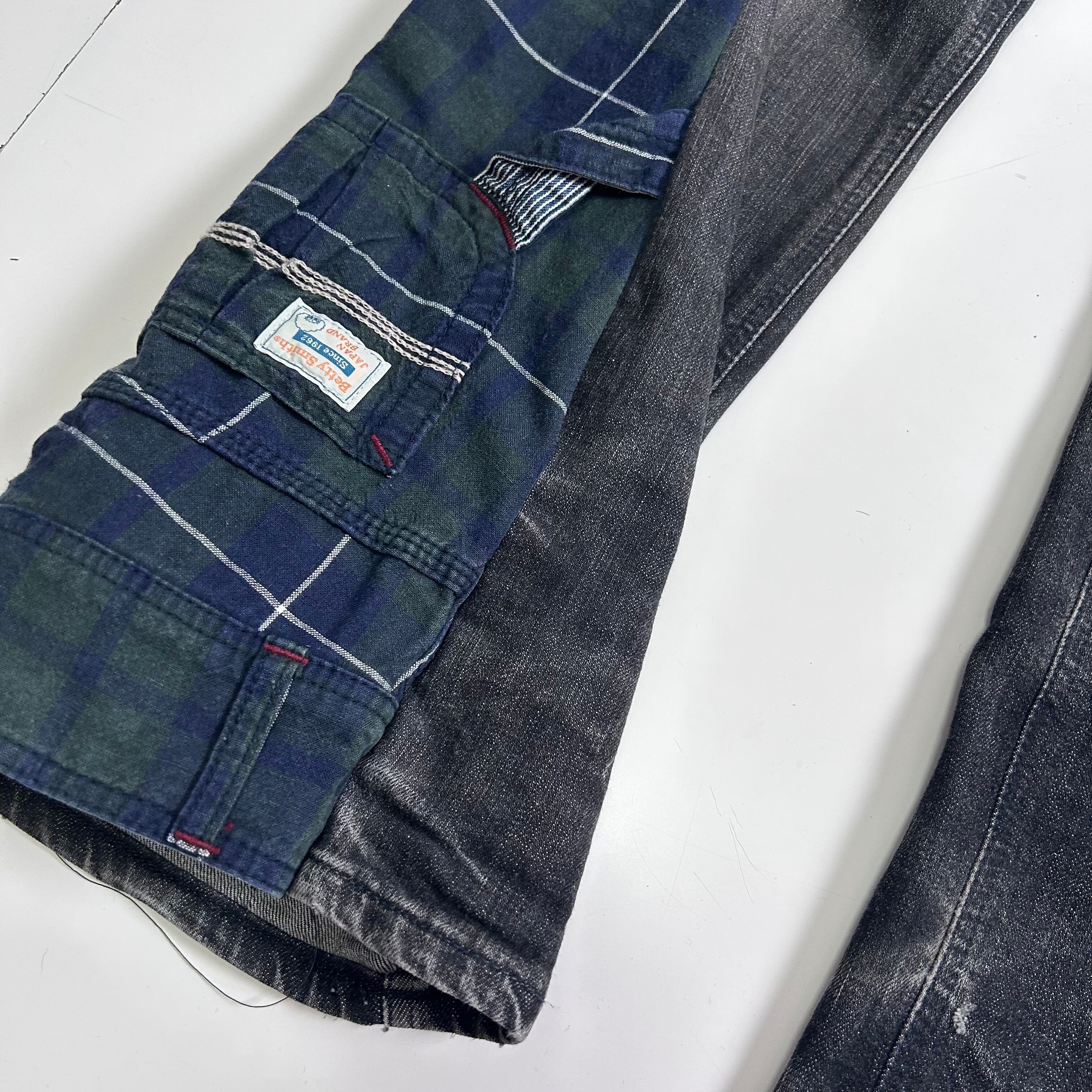 チェックパンツをブラックデニムにドッキングしたアイテム