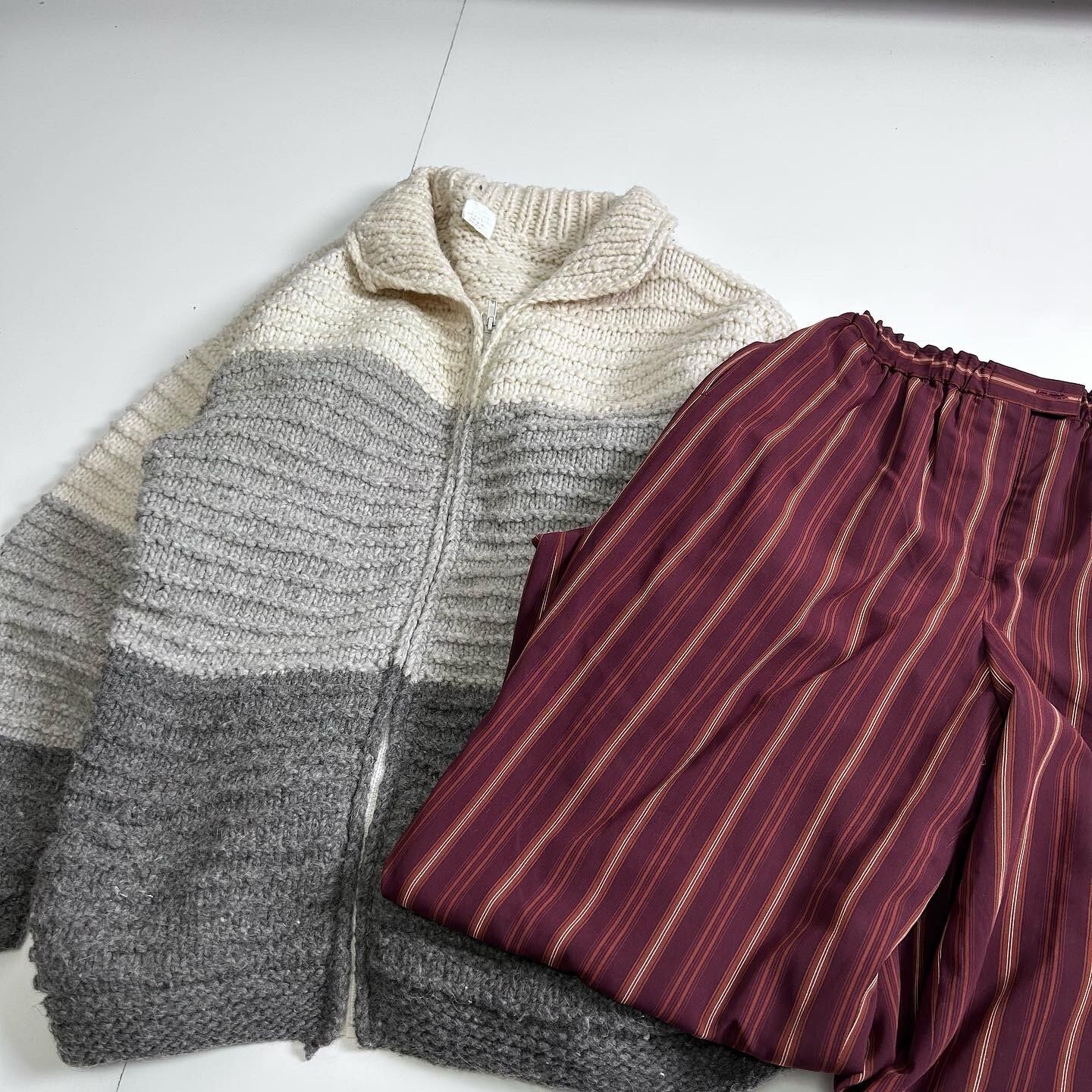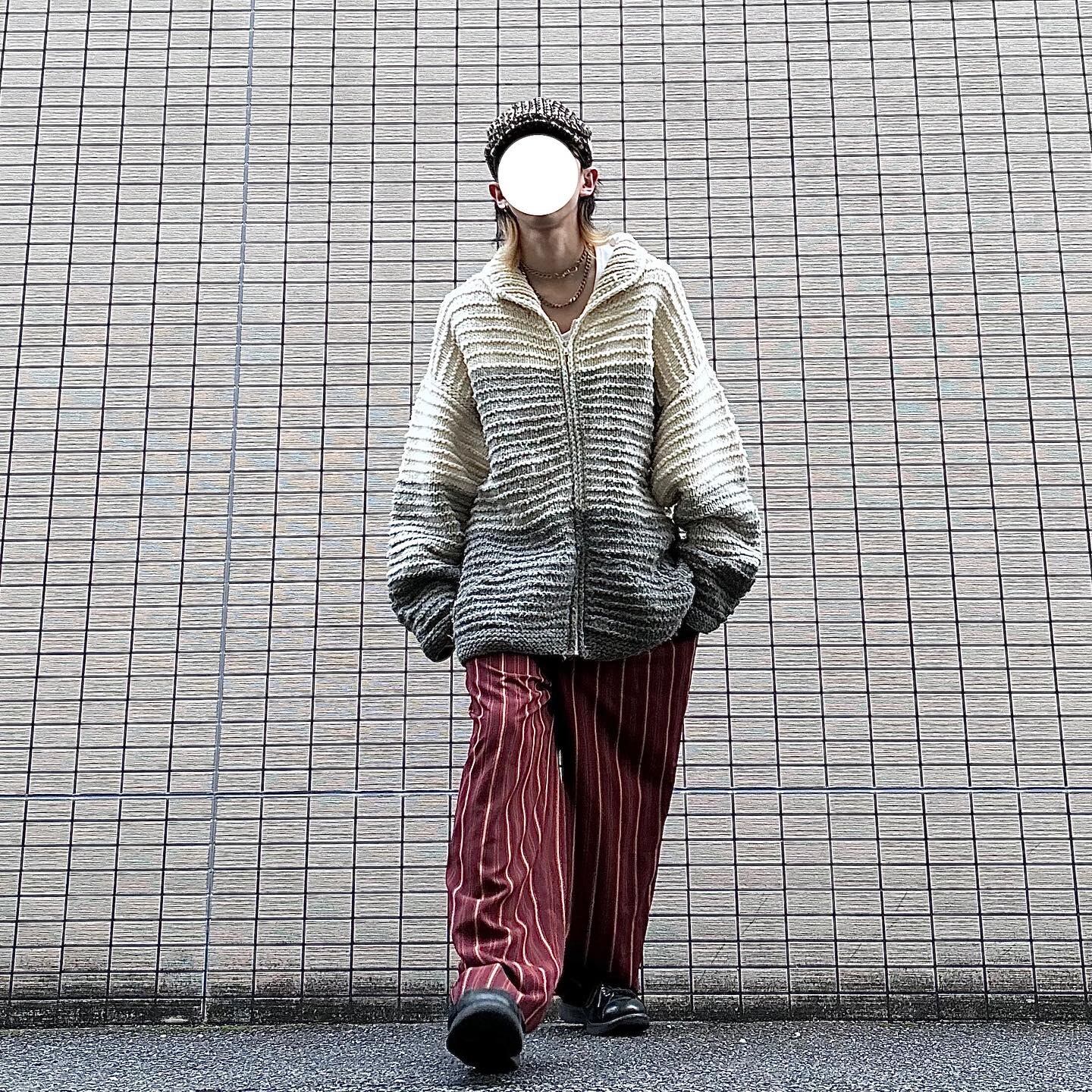 Tops used old zip厚手 ニットボーダーデザインジャケット