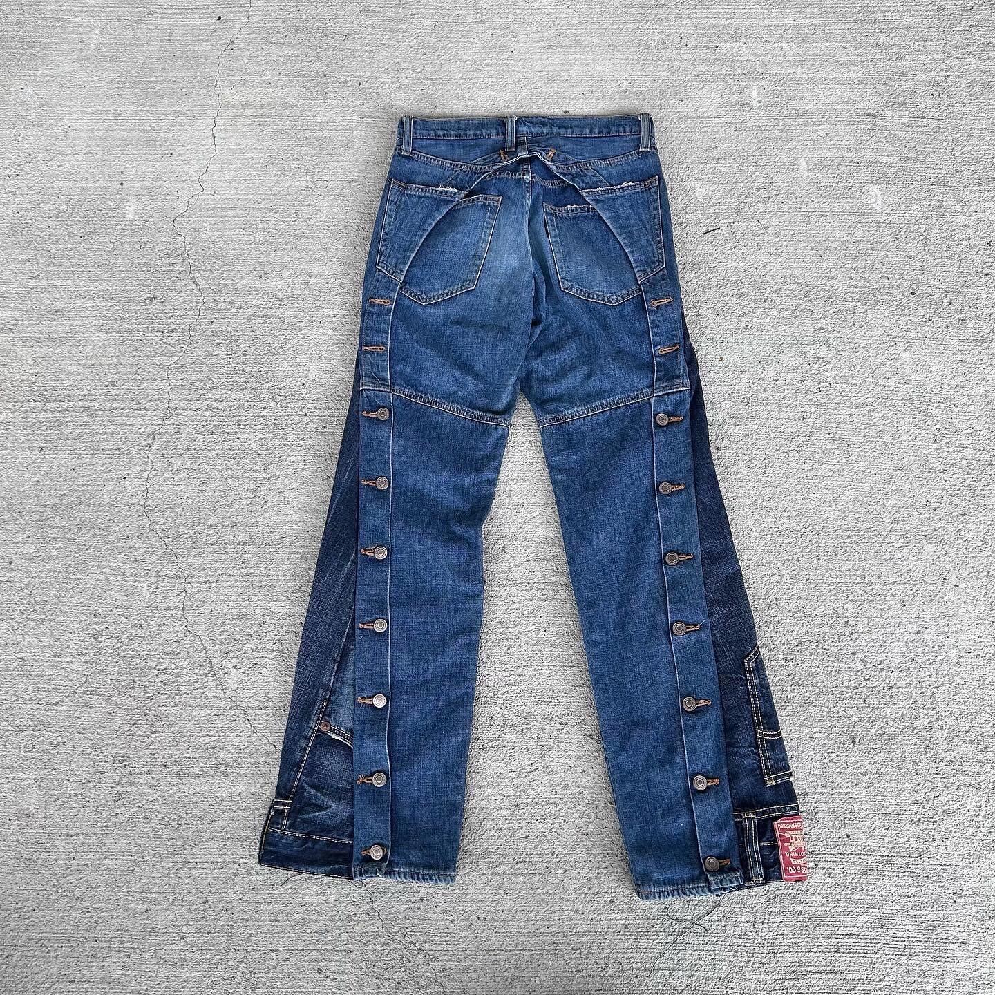 Pants 鬼渋 リメイクストレートデニム ドッキング サイドボタン加工