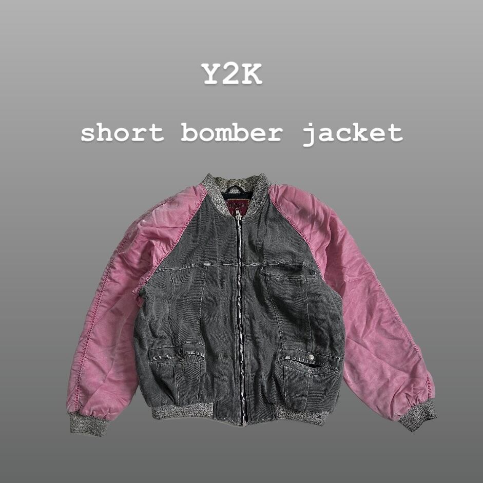 鬼渋 ショート丈 ボンバージャケット 色落ちカラー グレーピンク 刺繍 ワイド