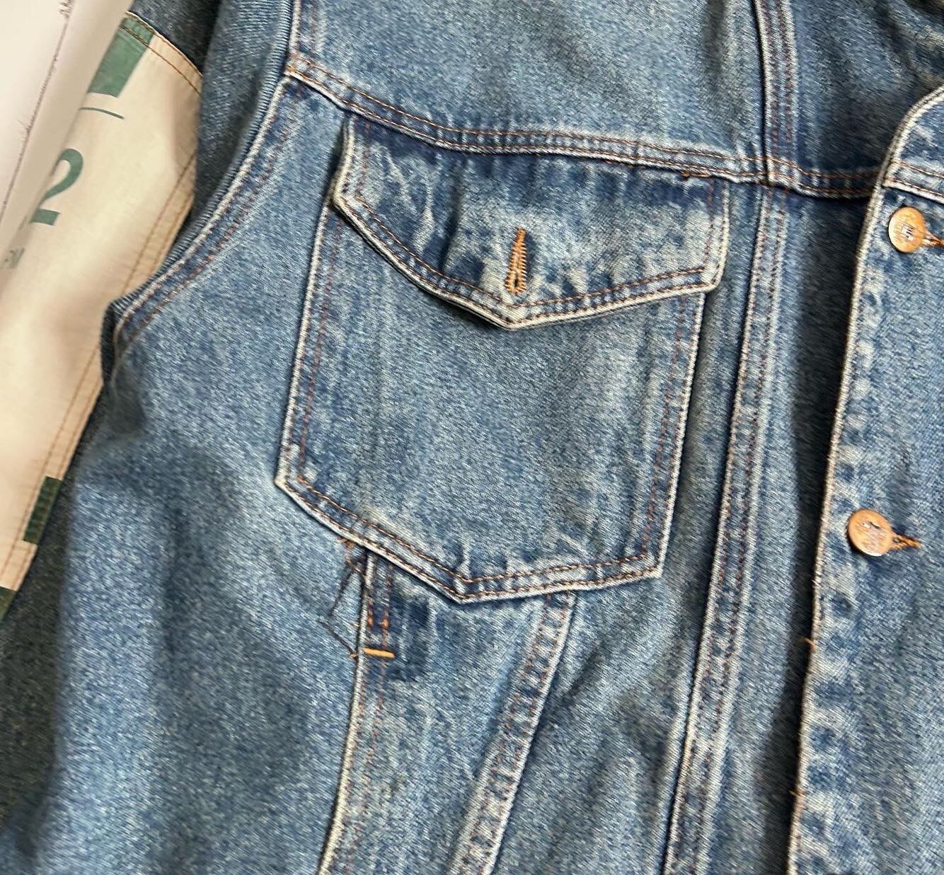 Tops 鬼渋 ドッキングリメイクデニムジャケット 襟切替 パッチワーク ショート丈