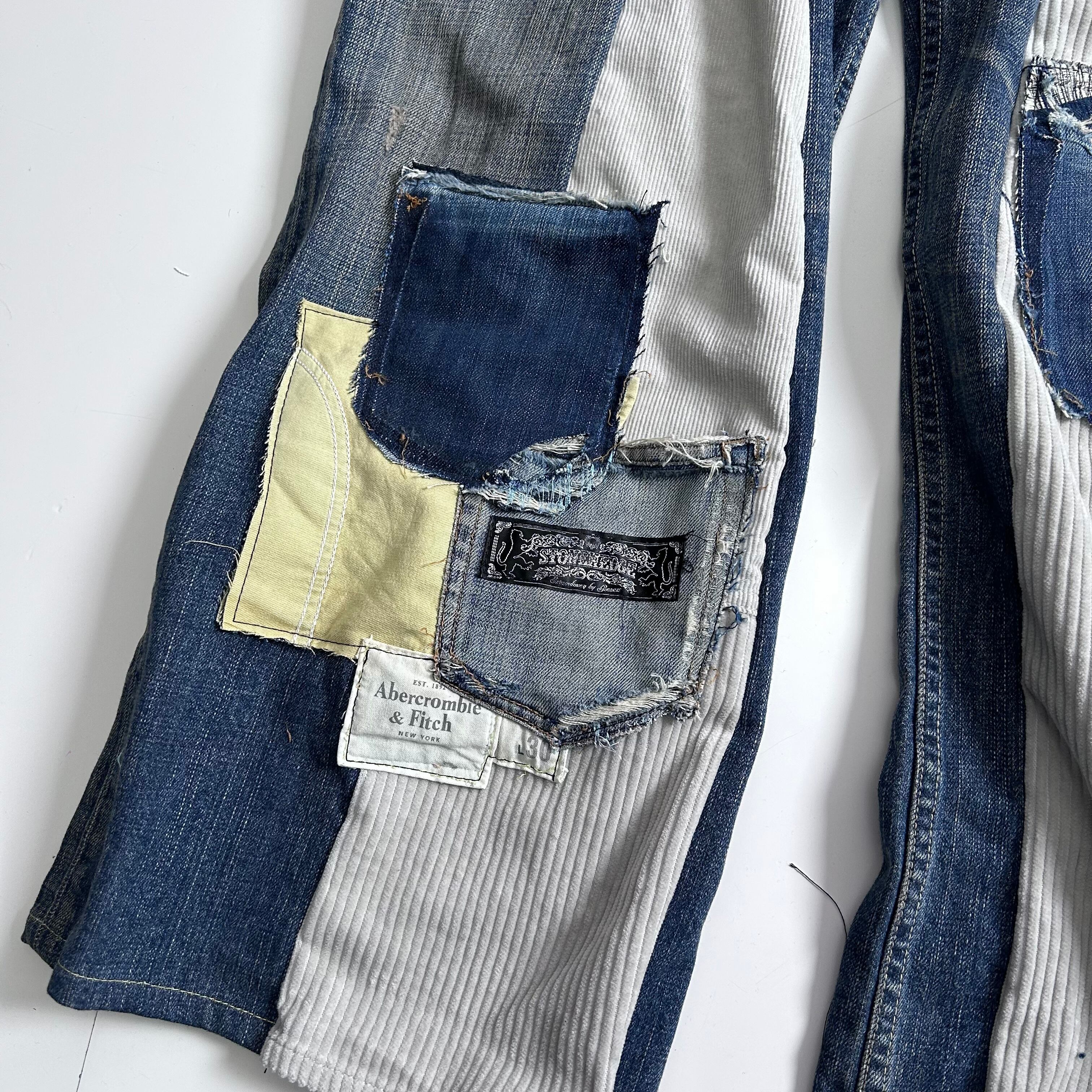 Y2K バギー パッチワークデニム ダメージ 極太 ストリート コードュロイ