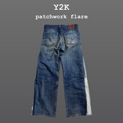 鬼渋 Y2K パッチワーク フレアデニム ダメージ加工 ベルボトム ワイド