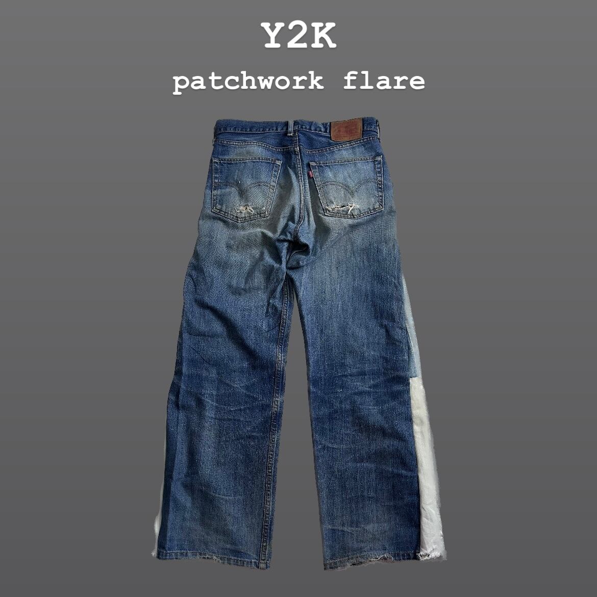 鬼渋 Y2K パッチワーク フレアデニム ダメージ加工 ベルボトム ワイド 常田