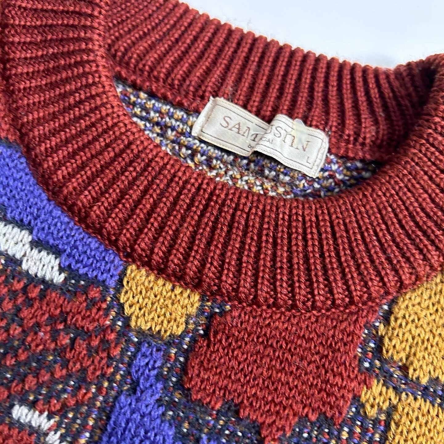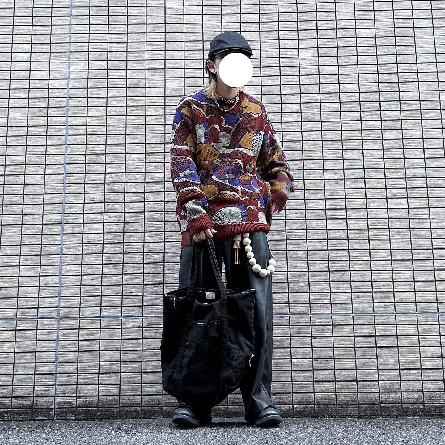 鬼渋 レトロ柄 オーバーサイズ 柄ニット 厚手
