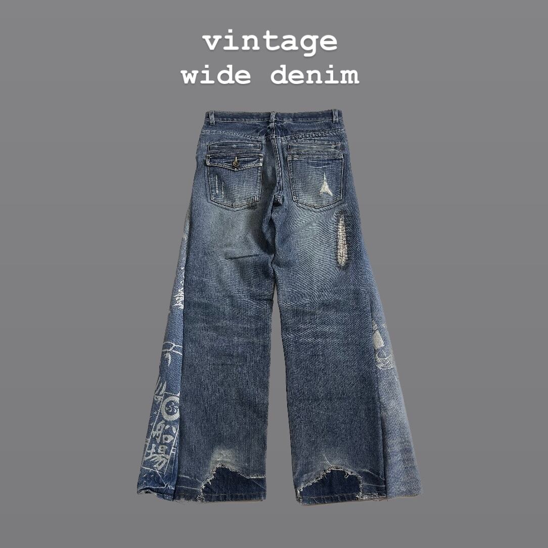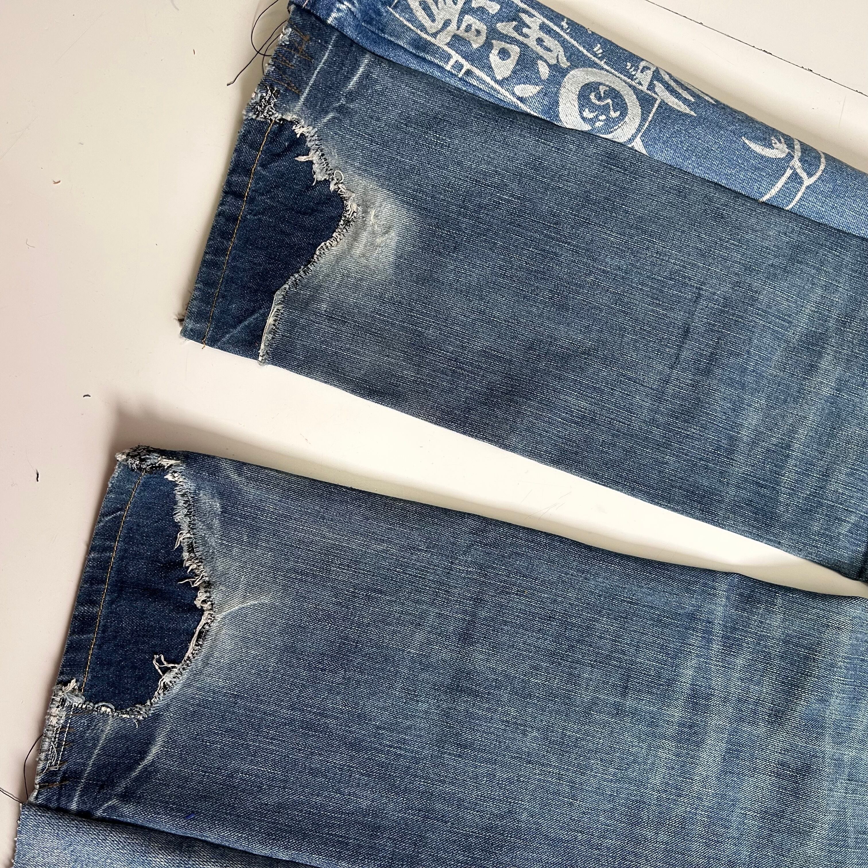 鬼渋 リメイク ペイントドッキングデニム リペア加工 極太 柄デニム Y2K