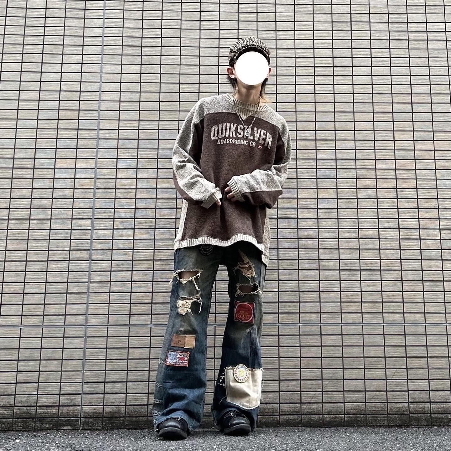 Tops old クイックシルバー 鬼渋カラーニット コットンニット オーバーサイズ