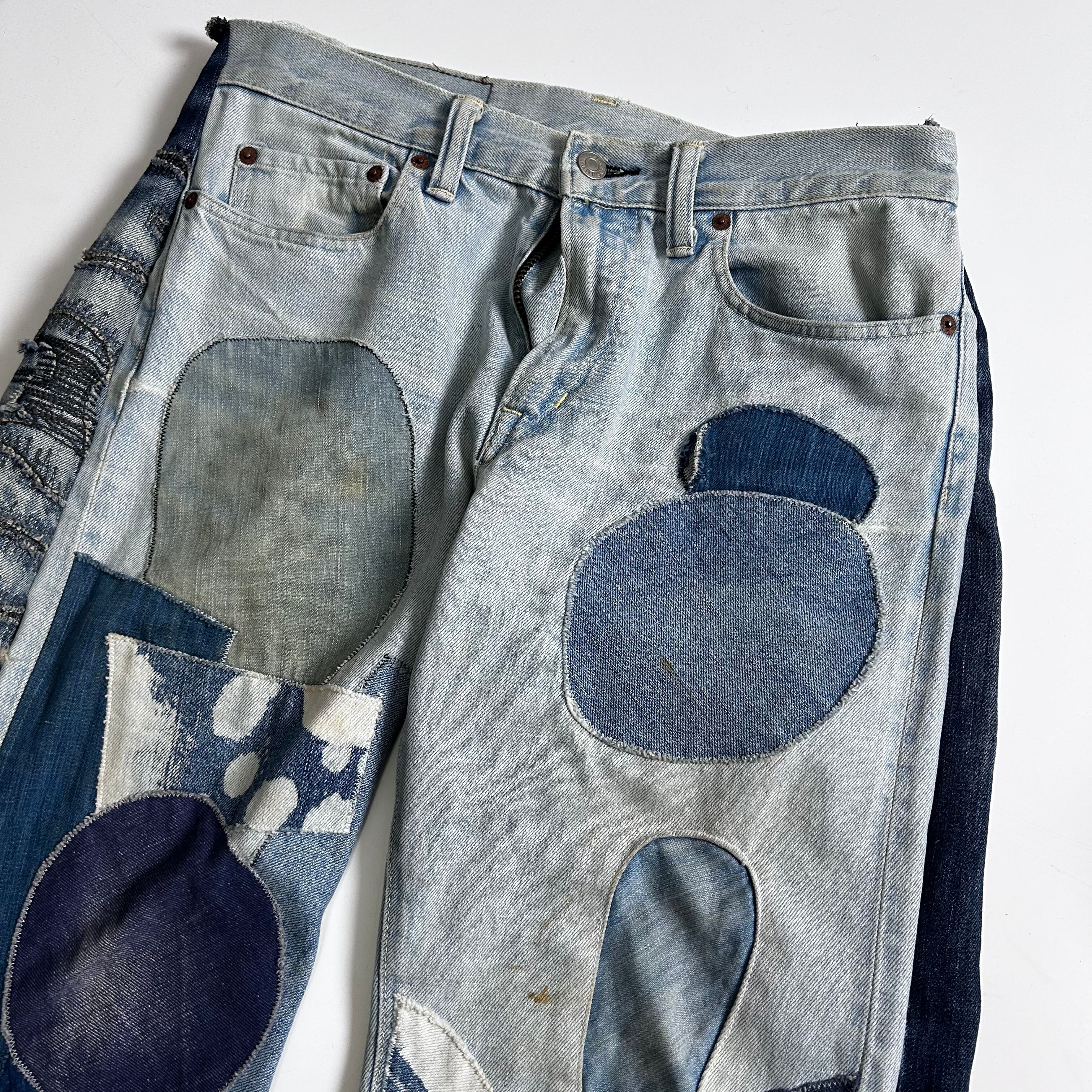 再構築 パッチワークデニム ワイドストレート ヴィンテージ加工 汚れ加工