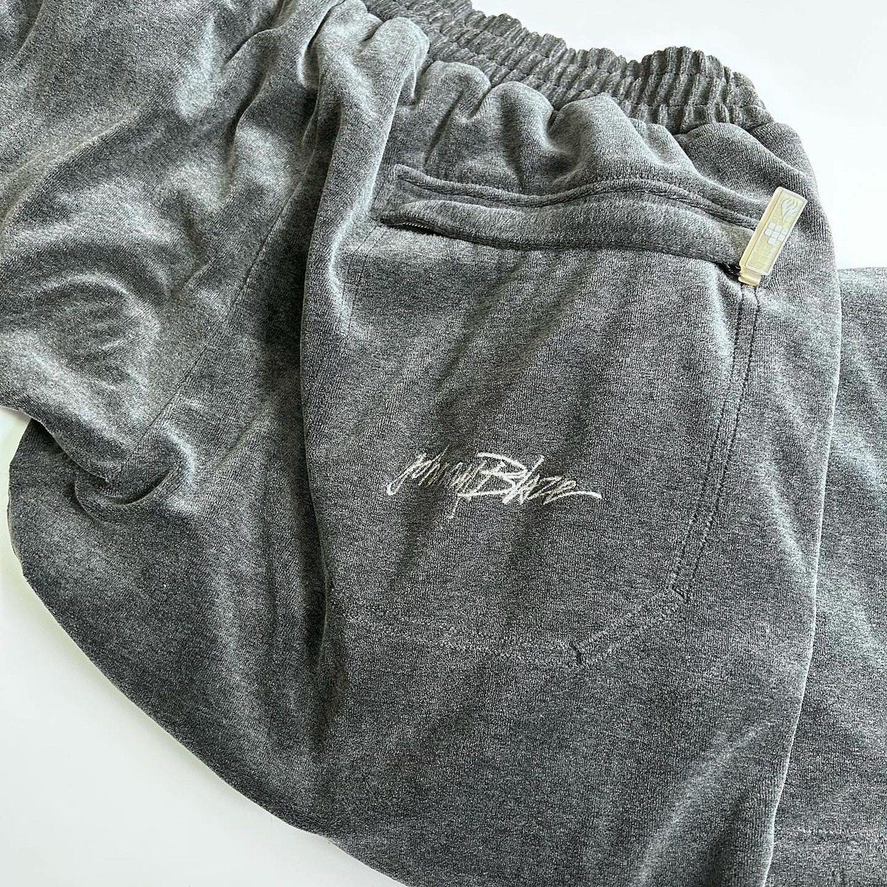 ベロア生地のワイドなスウェットパンツのようなシルエットでとりあえずかっこいいです!