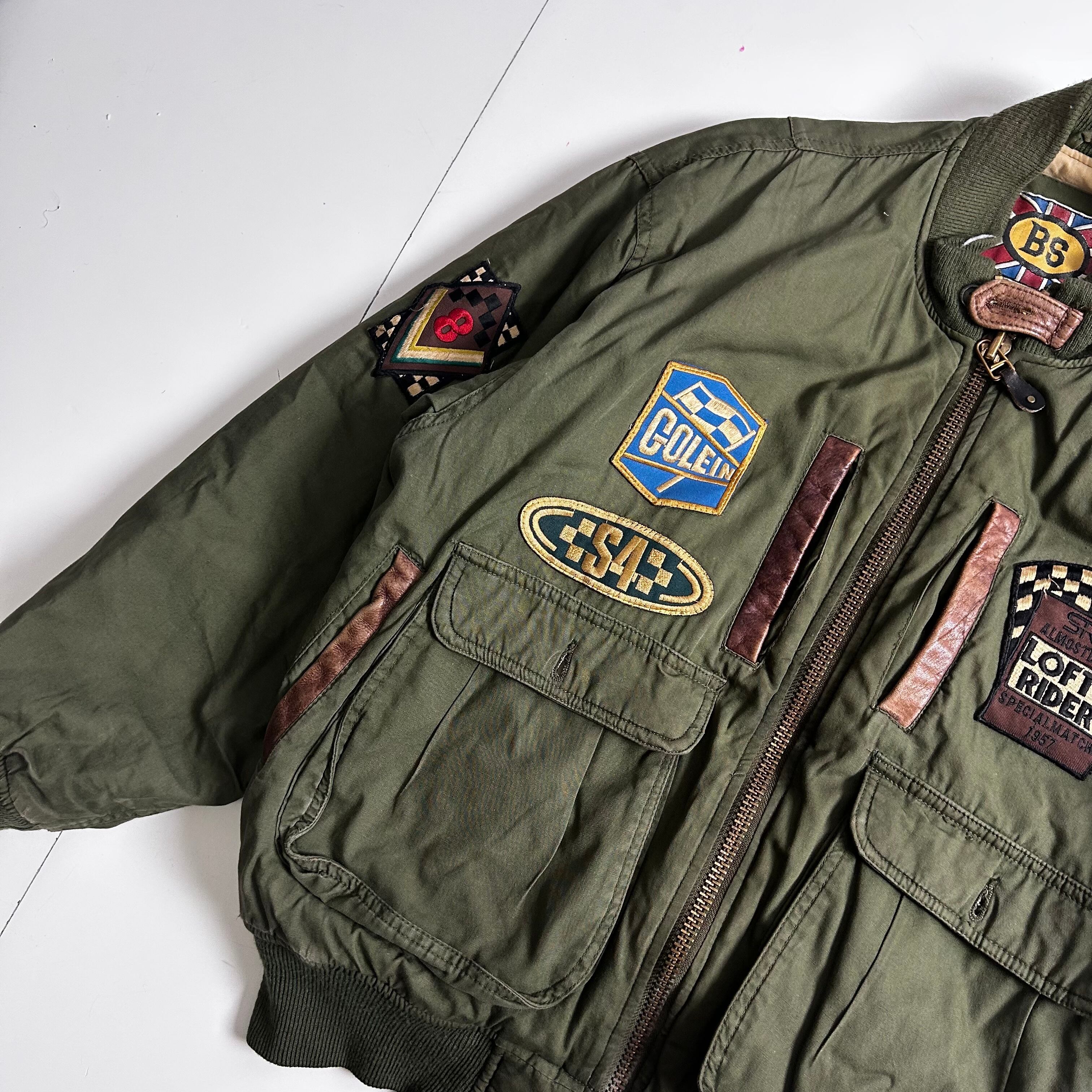 Old ワッペン ショートボンバージャケット ミリタリー ma1 ショート丈 裏地柄