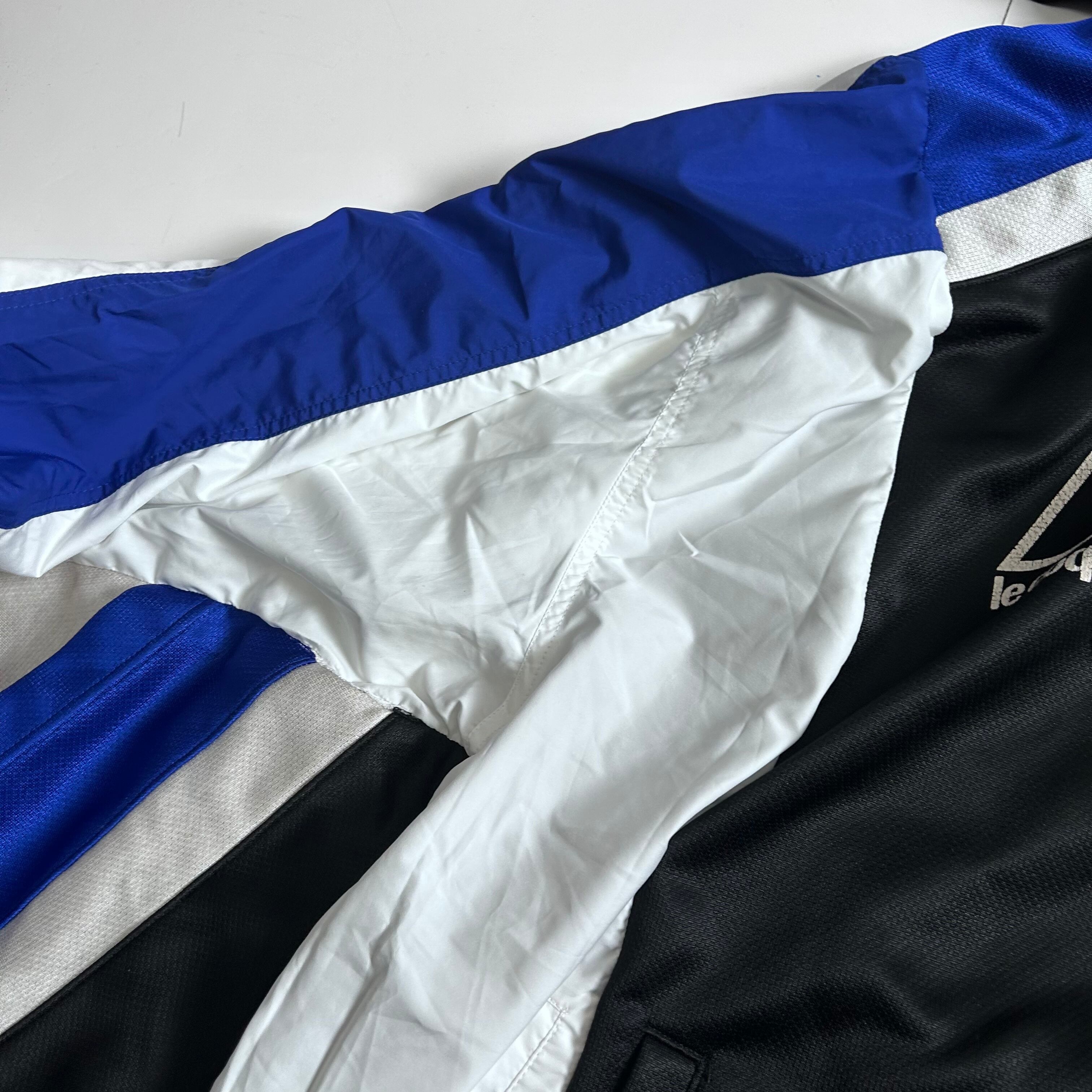 色味は青と白でも統一したかっこいいデザイン!バックプリントやアームスリーブロゴなどどの角度から見てもカッコいいアイテム!