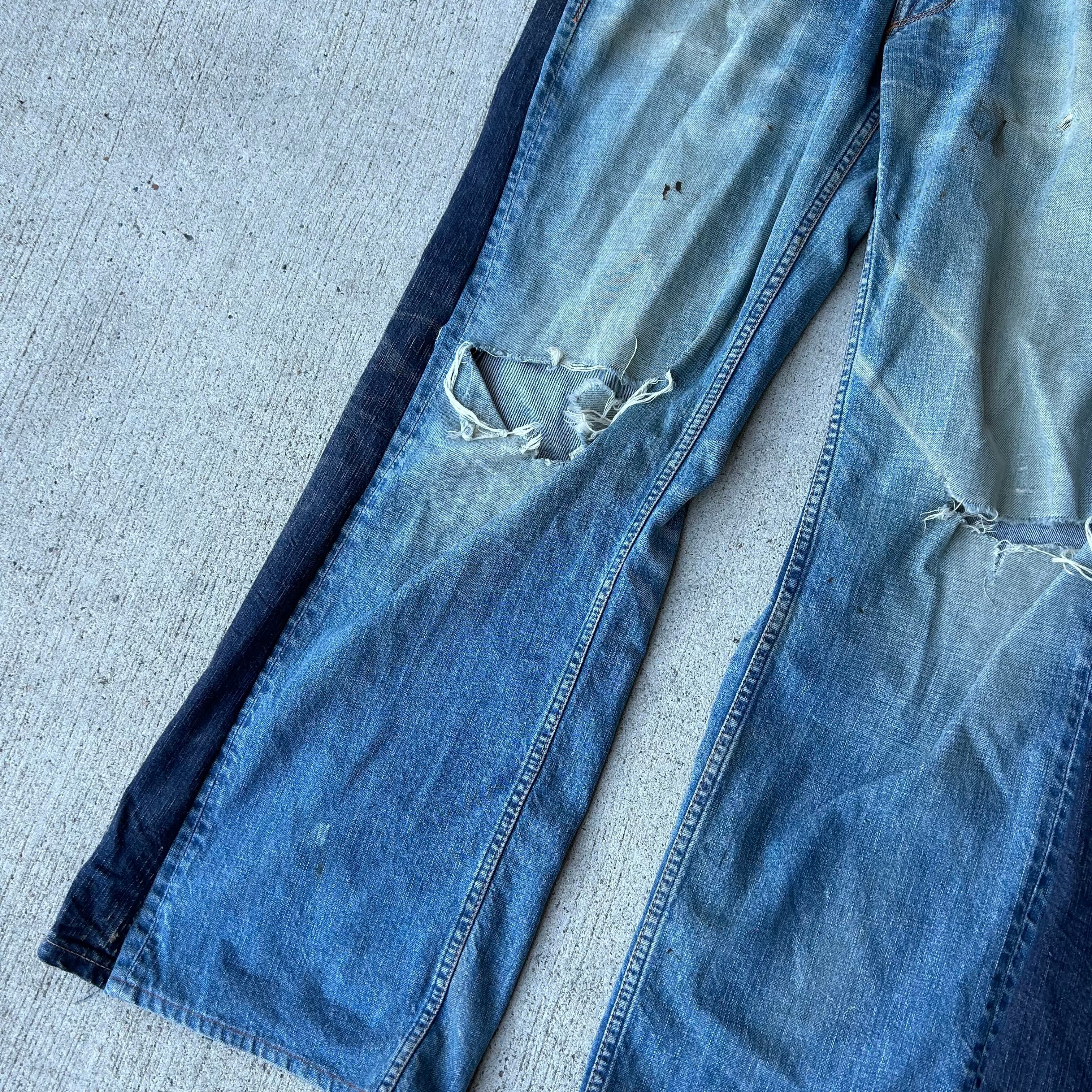 Used オリジナルリメイク ドッキング ダメージフレアデニム ワイドシルエット フレア ダメージ加工 ヴィンテージ加工