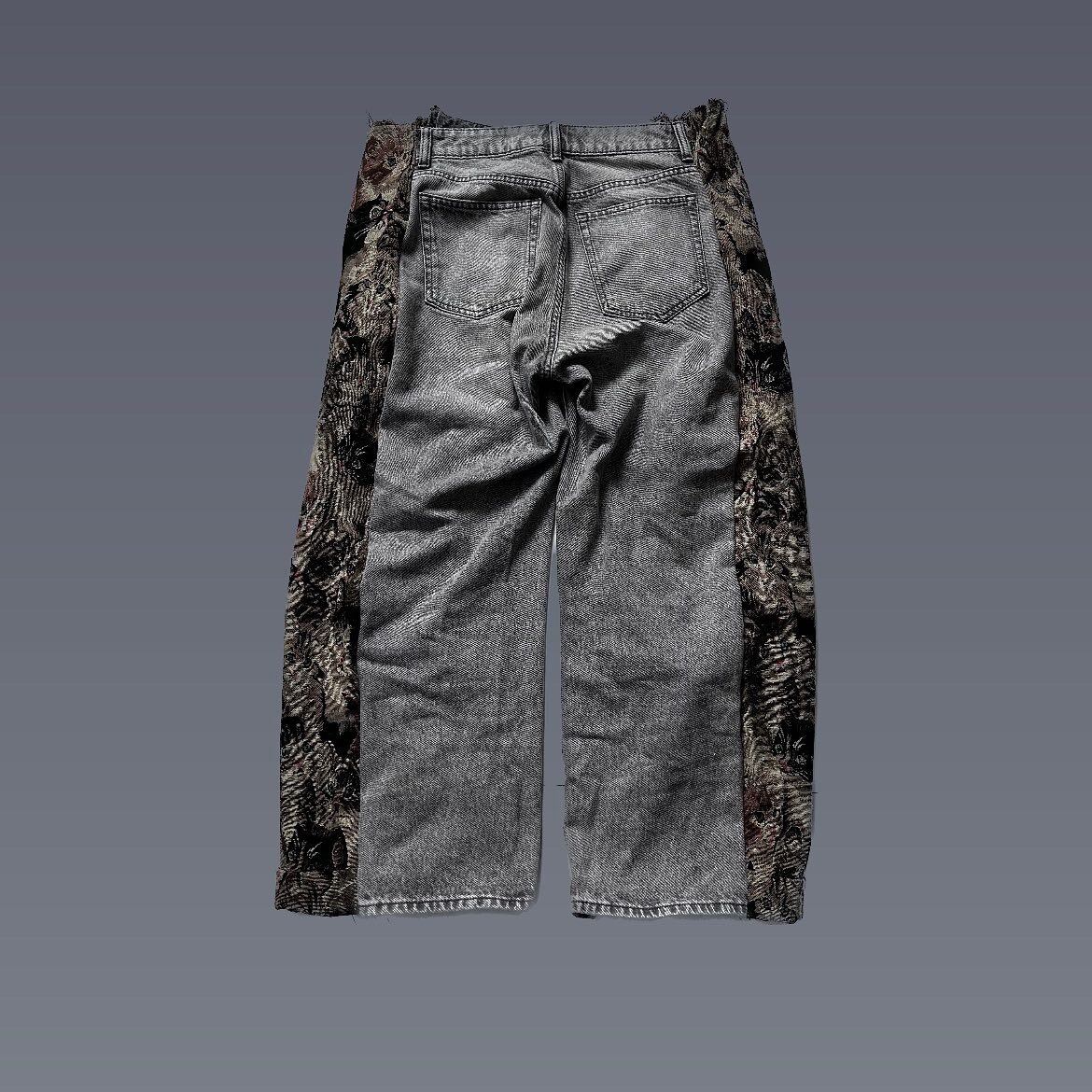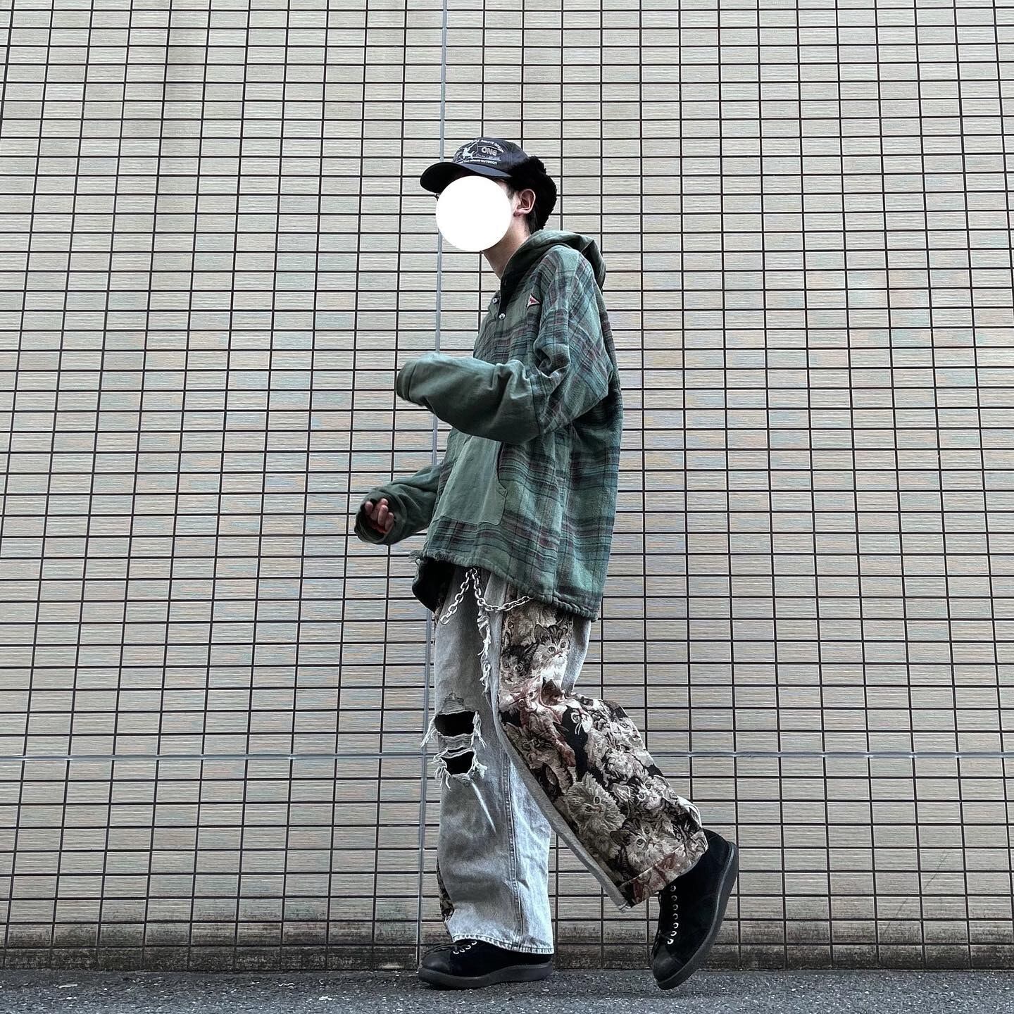 Pants 再構築 ワイド柄ダメージデニム ダメージ加工 猫柄 アニマル