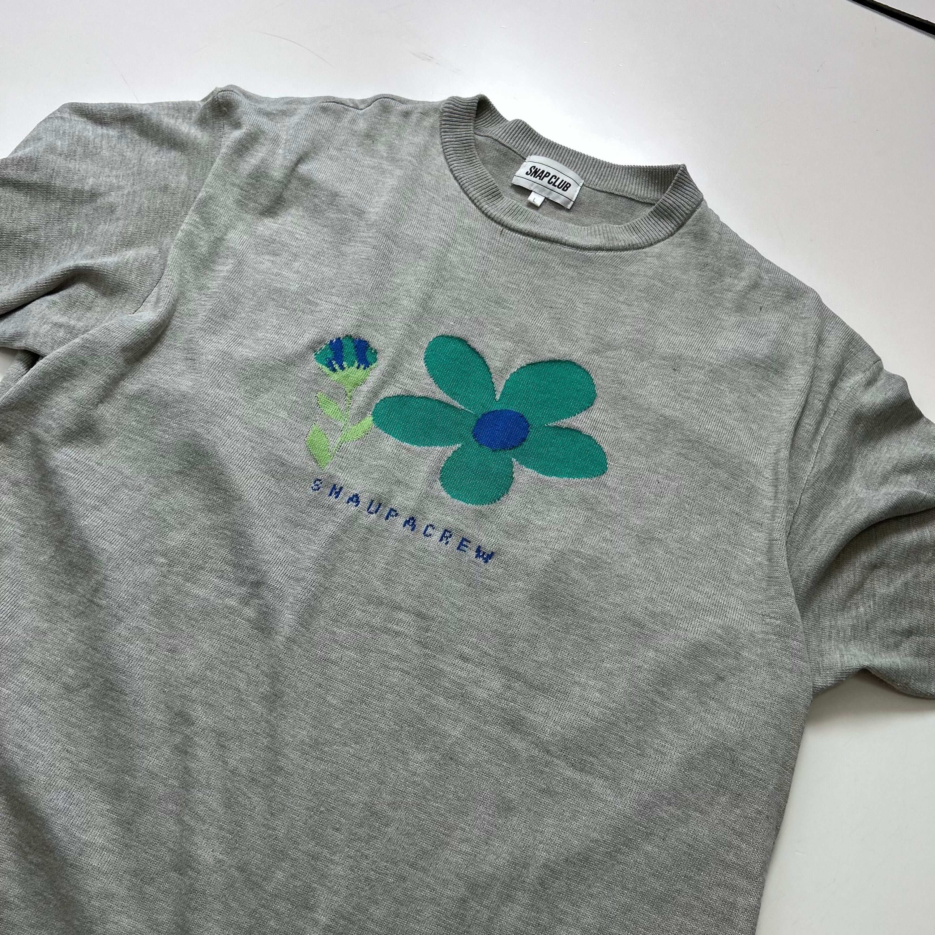 Tops used ニット生地 Tシャツ 花柄 オーバーサイズ