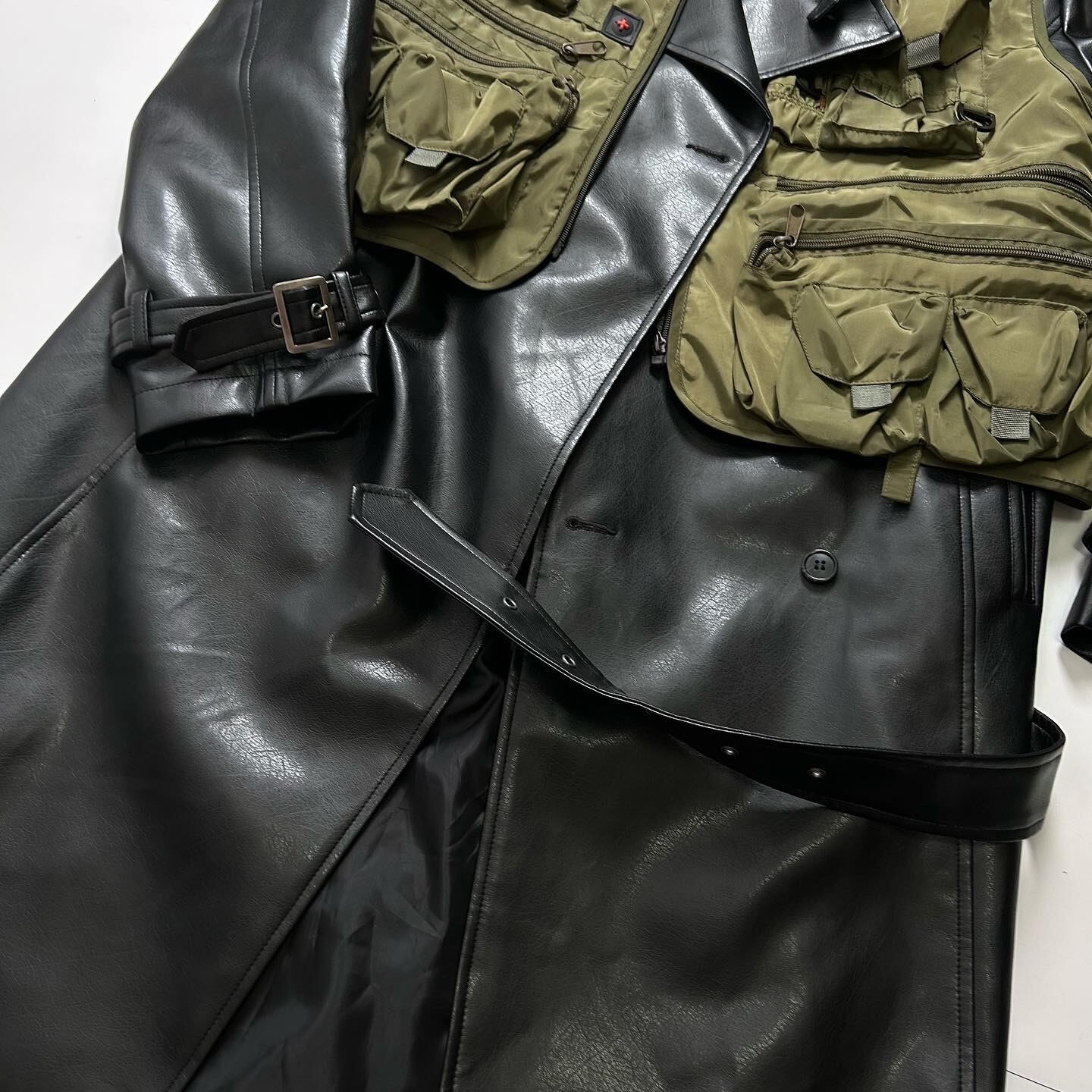 Tops used フェイクレザー オーバー ダブルトレンチコート ベルト