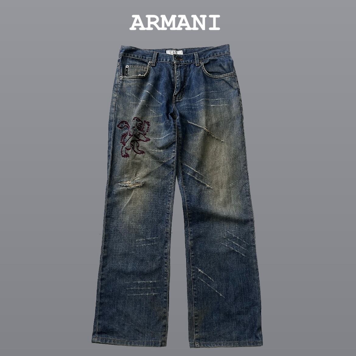 ARMANI アルマーニ ストレートダメージ 加工デニム 刺繍 ジーンズ