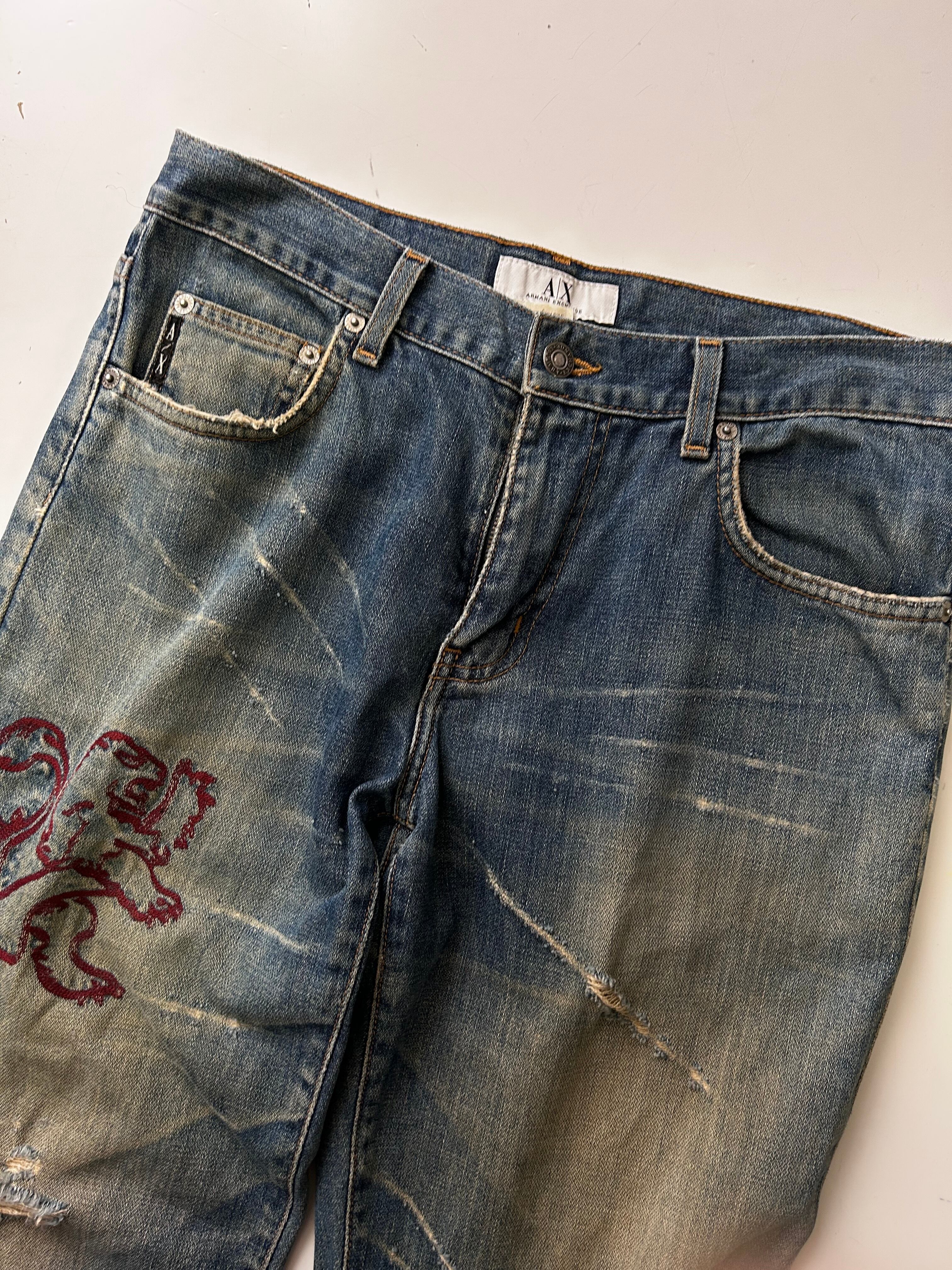 ARMANIエクスチェンジ ストレートダメージ 加工デニム 刺繍
