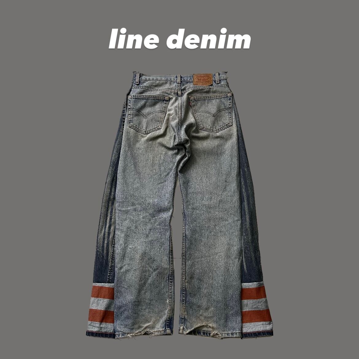 Pants 再構築 ドッキング シャドーストライプ ワイドフレアデニム ペイントボーダー ダメージ加工