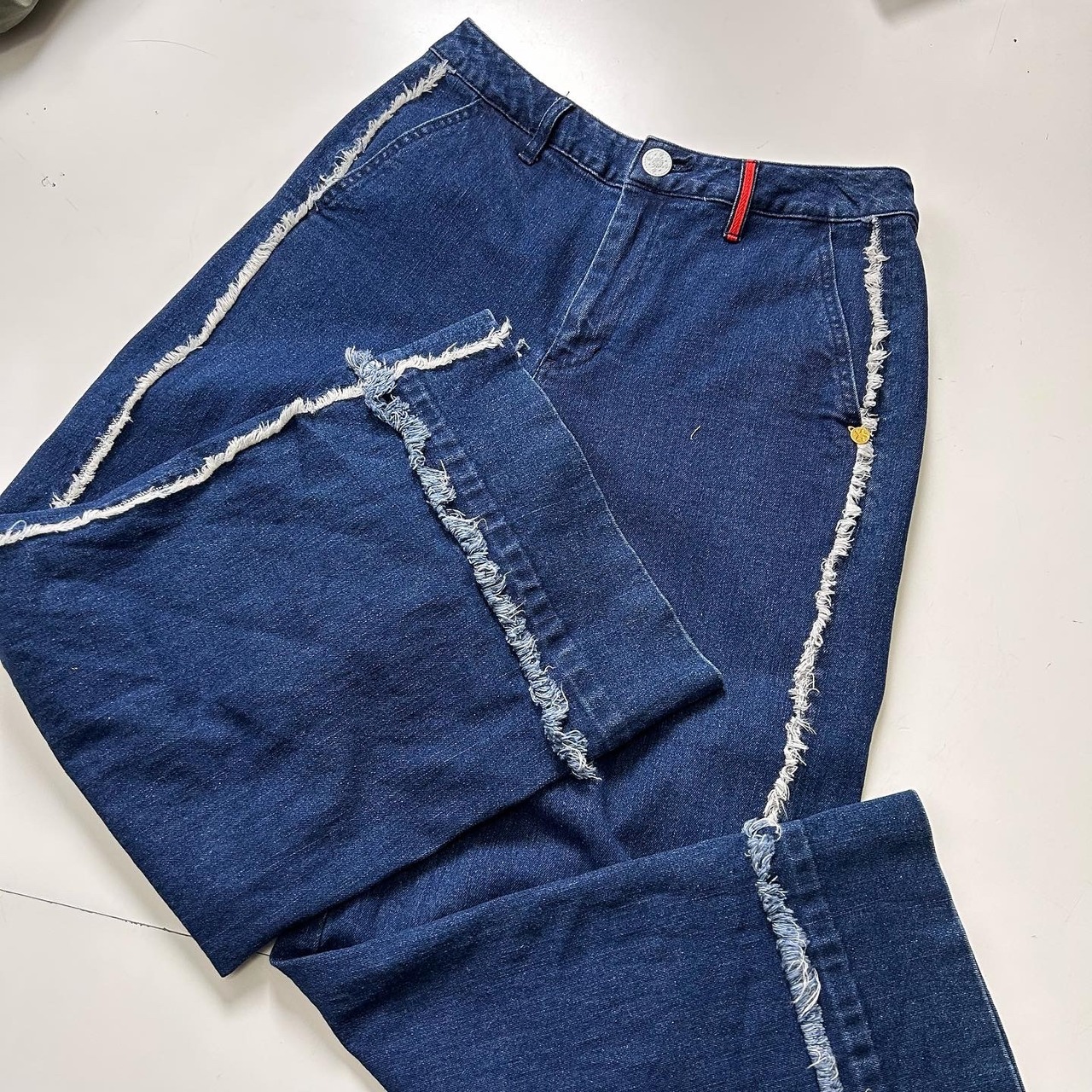 Pant used ノーブランド フリンジ 濃紺ワイドデニムパンツ