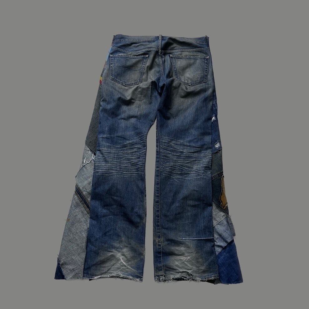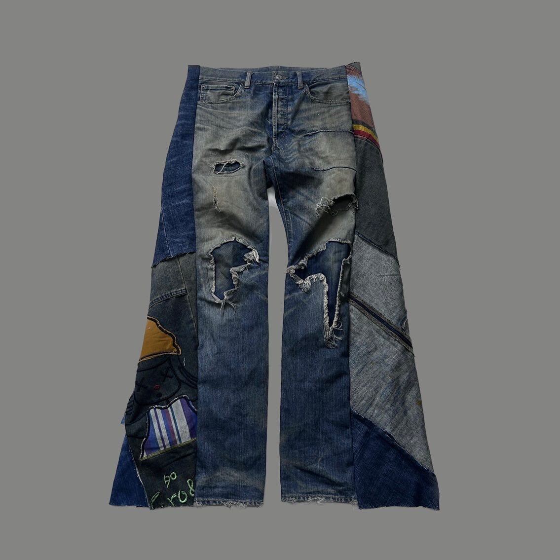 Pant 再構築 デザインパッチワークフレアデニム ヴィンテージ加工 クラッシュデニム