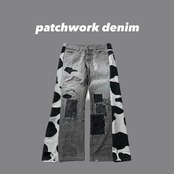 Pant再構築 パッチワーク柄フレアデニム ワイド ペイント加工 デザイン
