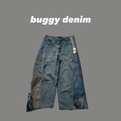 Pant再構築 パッチワークワイドバギーデニム リボンデザイン スカルペイント 国旗