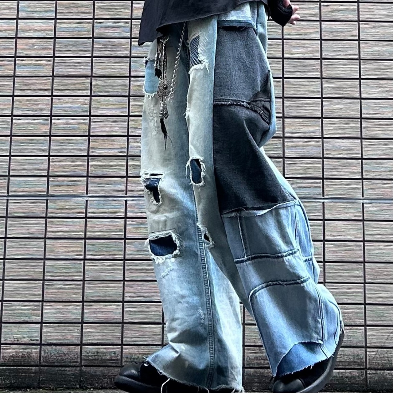 再構築 パッチワークフレアデニム リメイク ダメージ加工 ヴィンテージ 加工 リペア加工