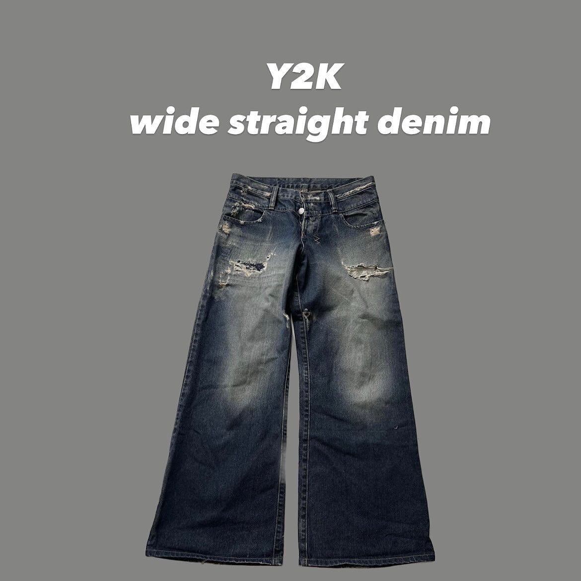 Pant Used 鬼渋 ワイドストレートデニム ダメージ加工 グッドシルエット 00s